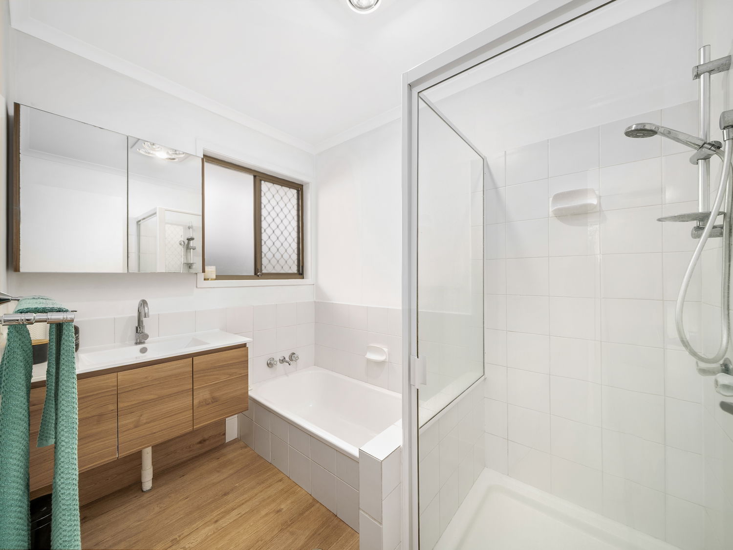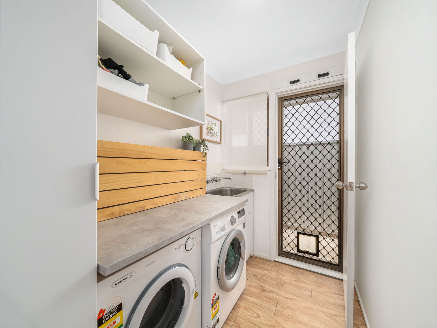 The bathroom is well-appointed with both a shower and a full-sized bathtub, making it perfect for families. A separate toilet provides added convenience, and the internal laundry offers generous storage and direct access to the outdoors, combining practicality with ease of living.