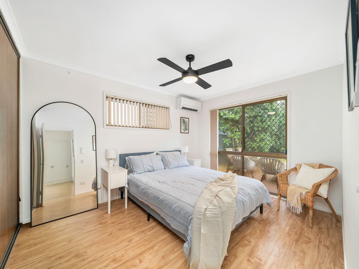 All three bedrooms feature large windows that welcome natural light and fresh breezes throughout the day. The master bedroom is thoughtfully designed with a built-in robe for convenient storage, while air conditioning and ceiling fans in every bedroom ensure comfort and climate control all year round.
