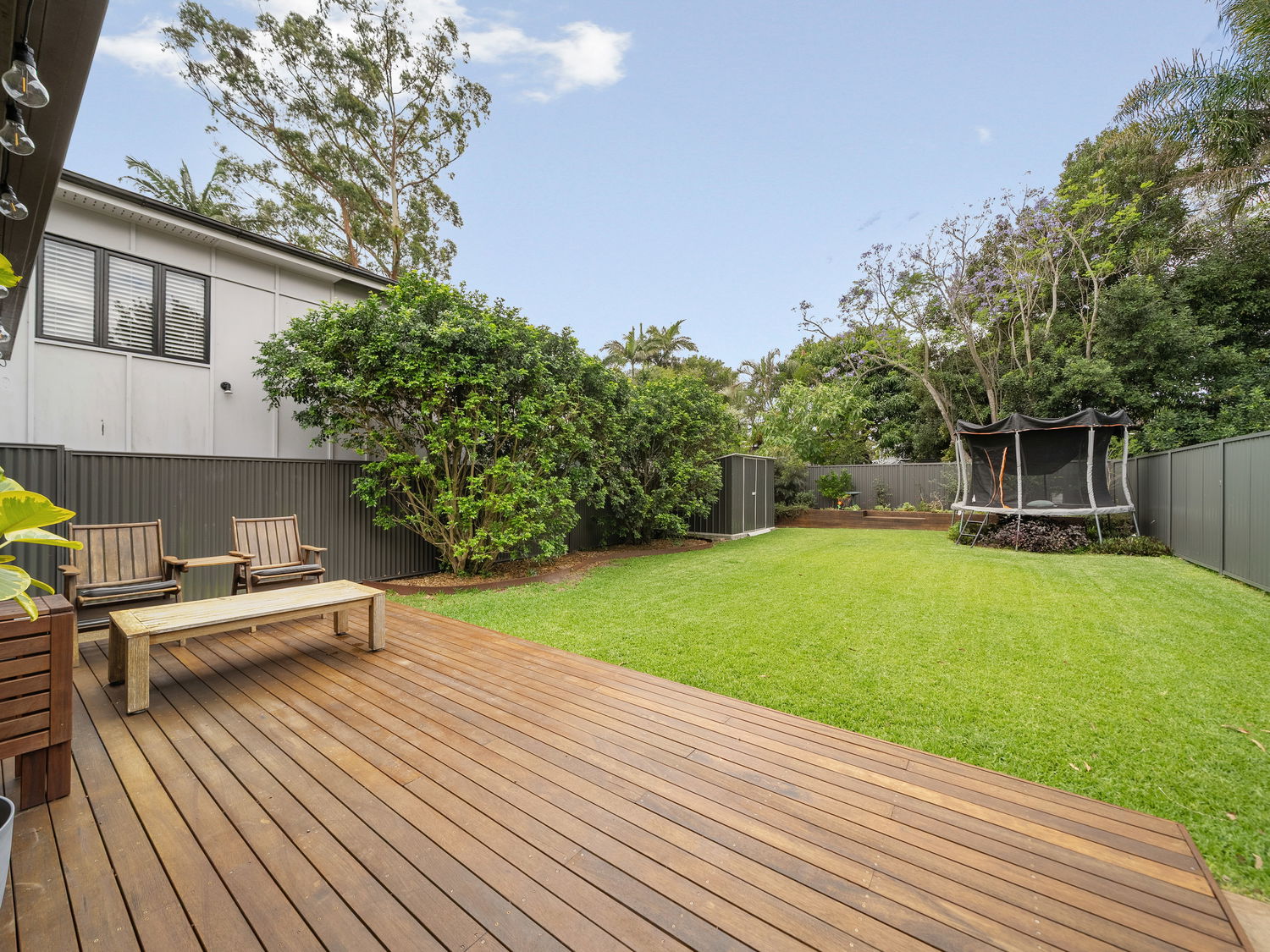 At the rear of the property, a timber deck provides a perfect space for outdoor entertaining or relaxing under the stars, overlooking the lush backyard. The fully fenced yard offers privacy and security, making it ideal for children and pets, while the garden shed provides practical storage for tools and equipment.