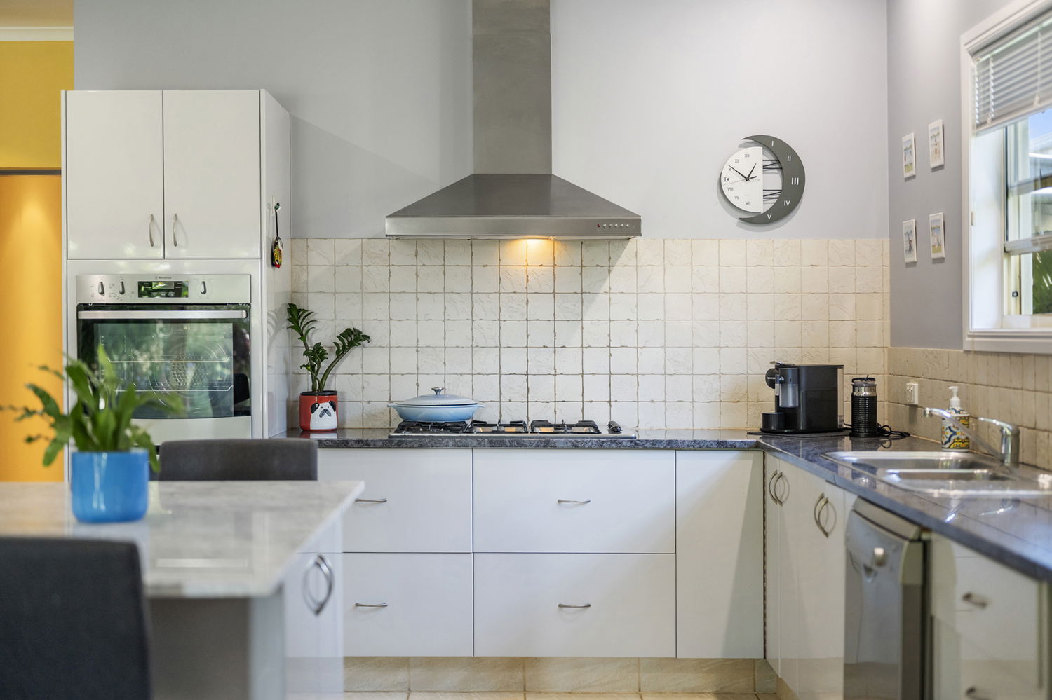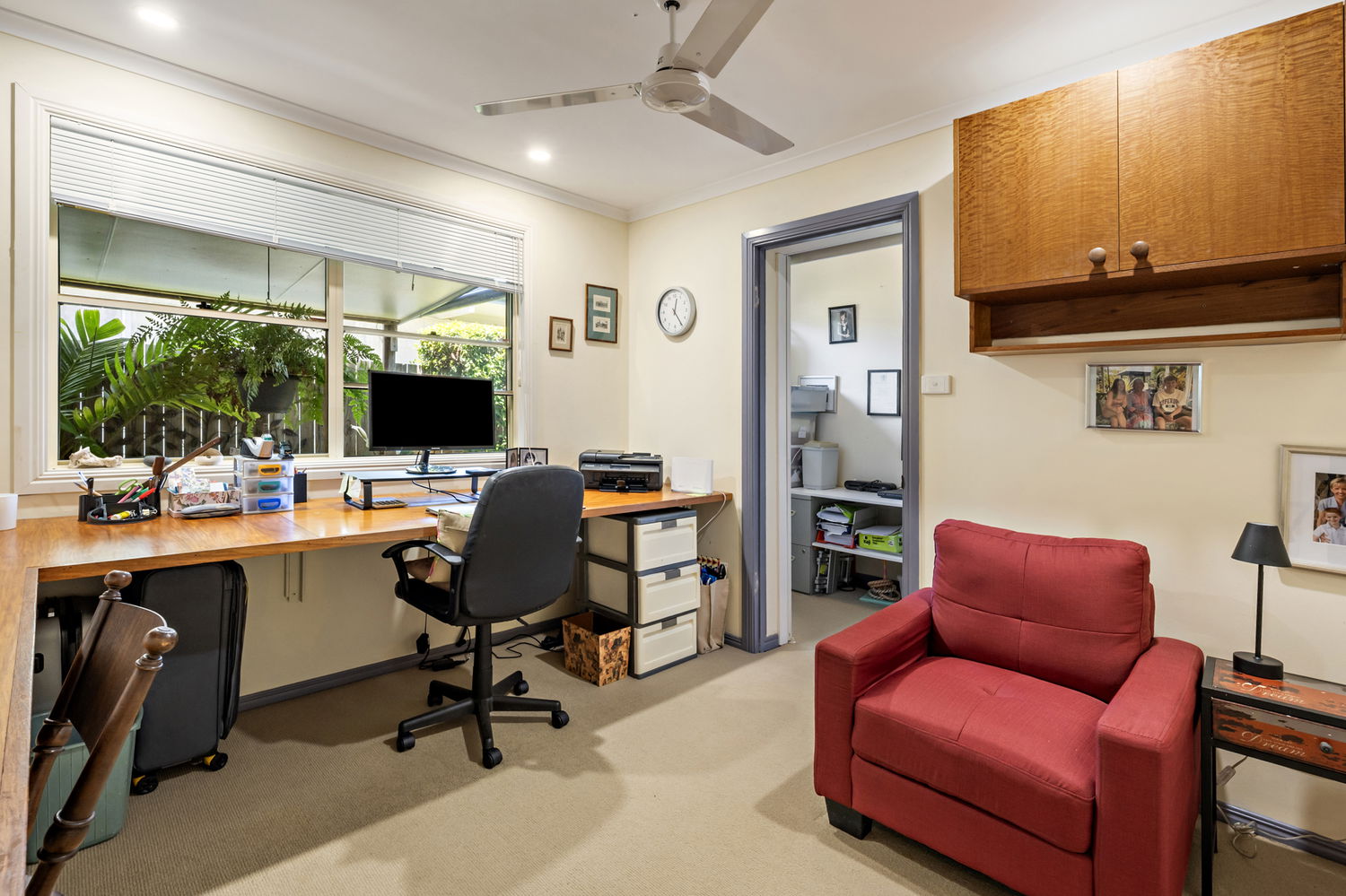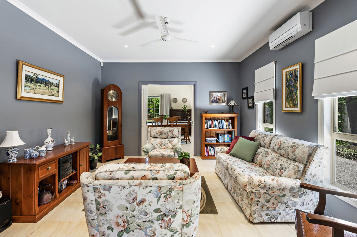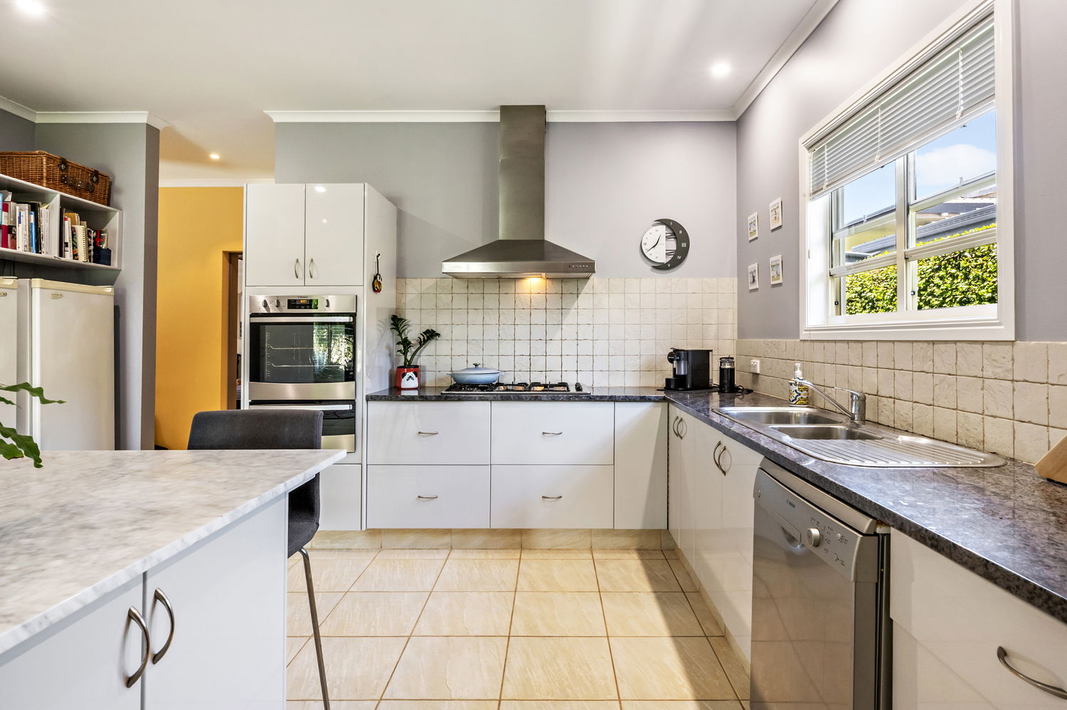Occupying a generous 759m² allotment, the home is surrounded by impeccably manicured gardens, creating a private and picturesque setting that is both welcoming and serene. The heart of the home is the expansive kitchen and living domain, where soaring pitched ceilings enhance the sense of volume and natural light. While large windows frame calming garden views, delivering a seamless connection between indoors and out.