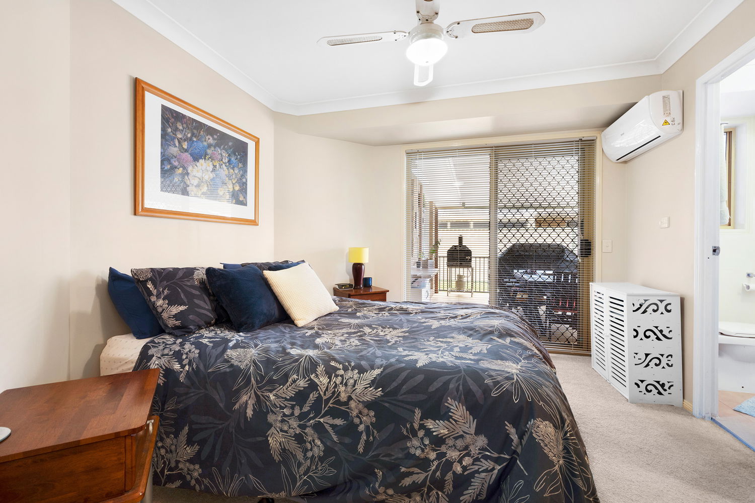 – Four well-sized bedrooms all with carpet, ceiling fans and built-in wardrobes. The master bedroom offers a large floor plan, walk-in wardrobe, external access and ensuite