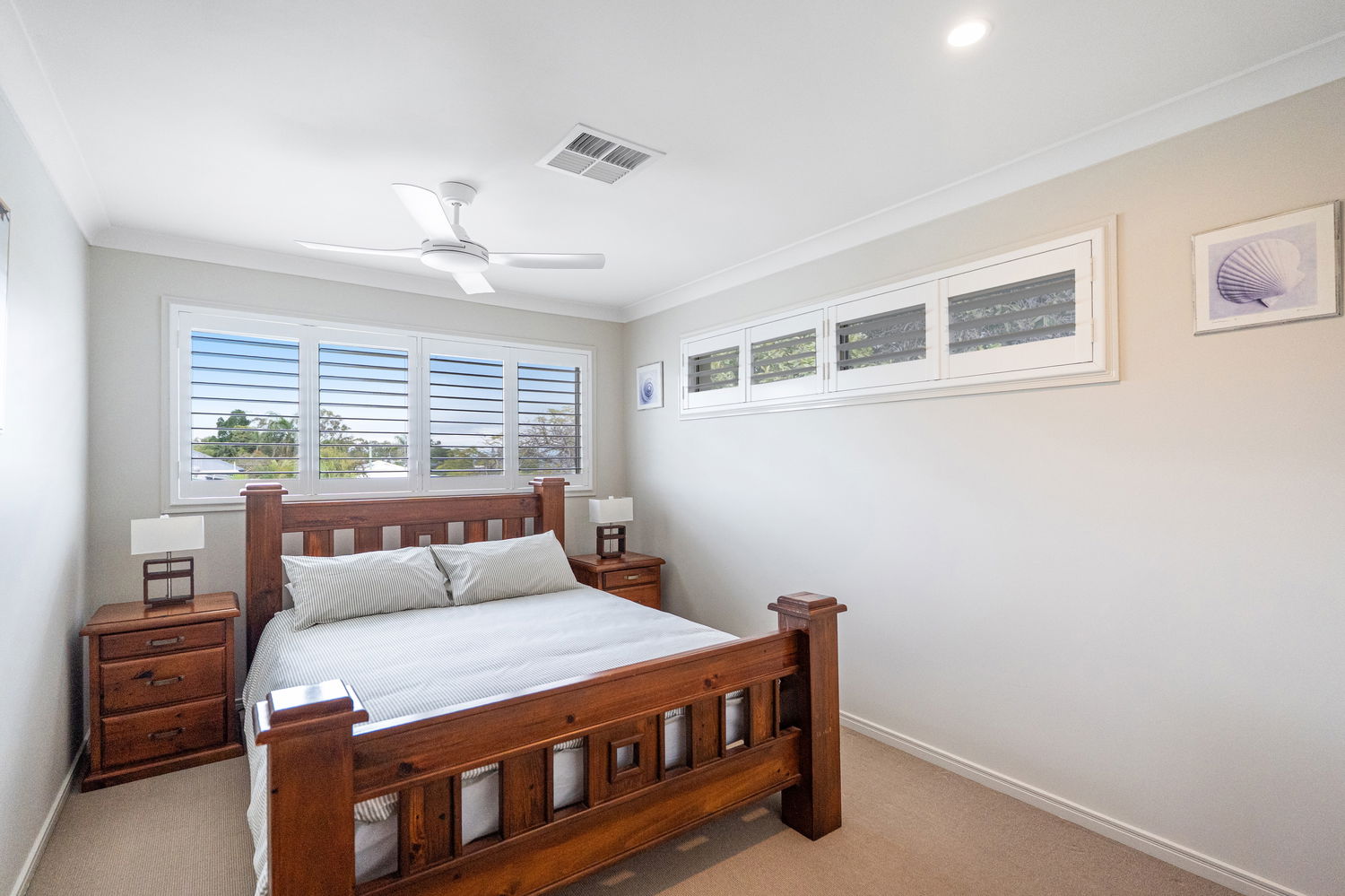 Up the stylish internal stairs takes you to 3 large bedrooms (two with water glimpses across to Bramble Bay)