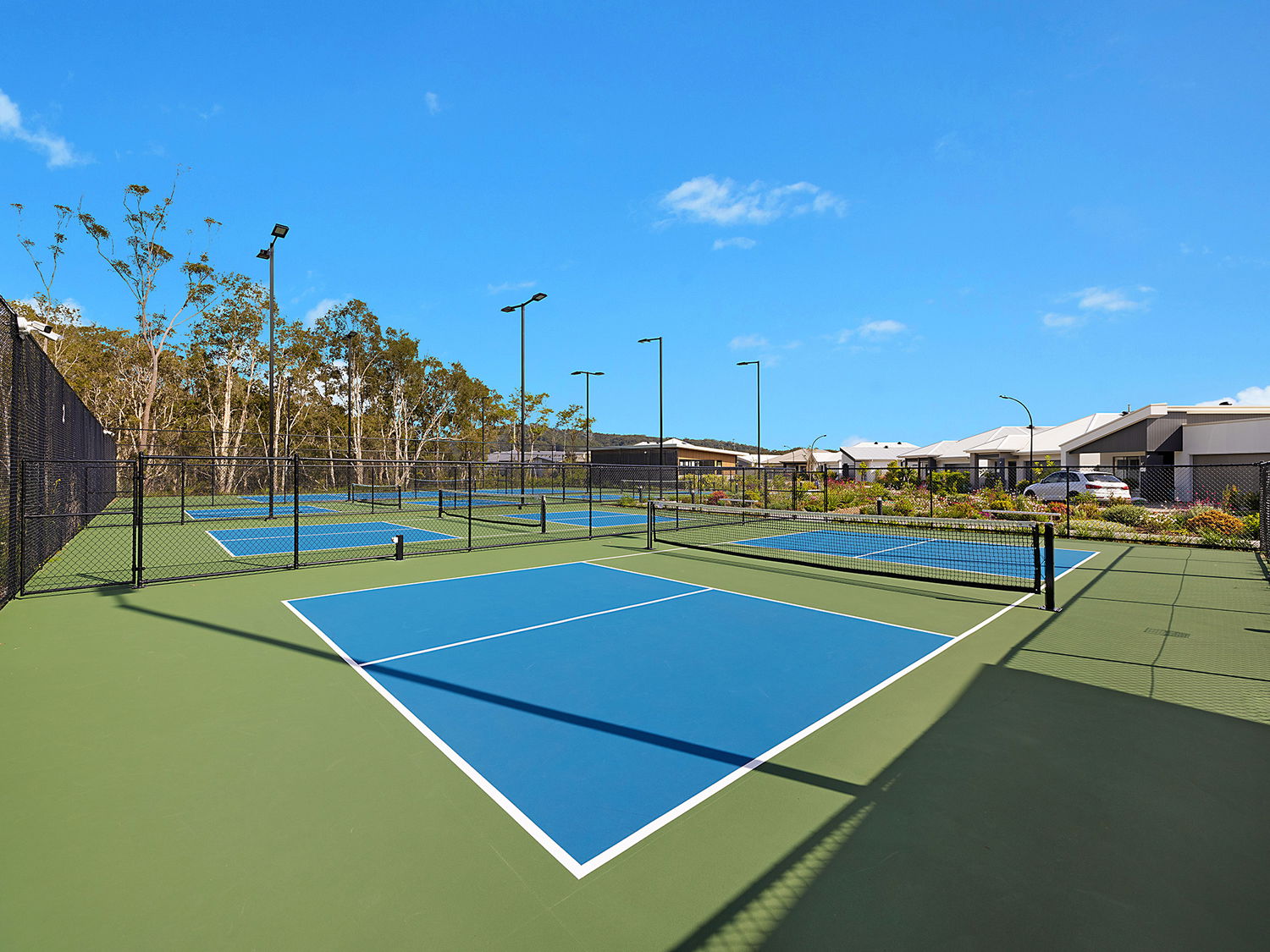 Racquet club pavilion with Floodlit tennis and 4 pickleball courts