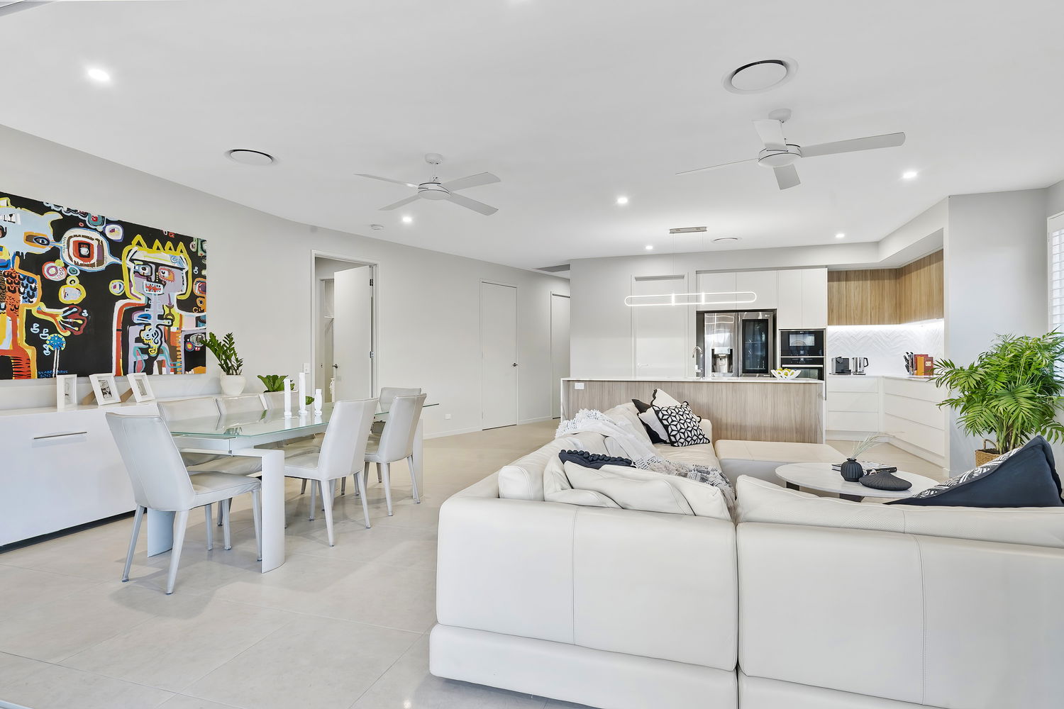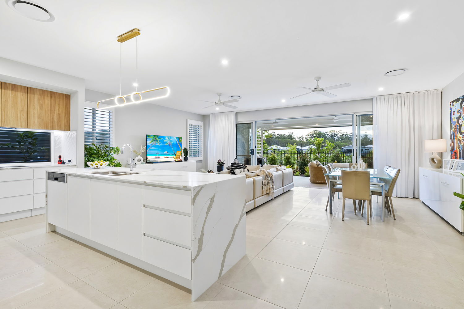 • Spacious open plan kitchen, dining and lounge overlooking the outdoor terrace, gardens and lakes