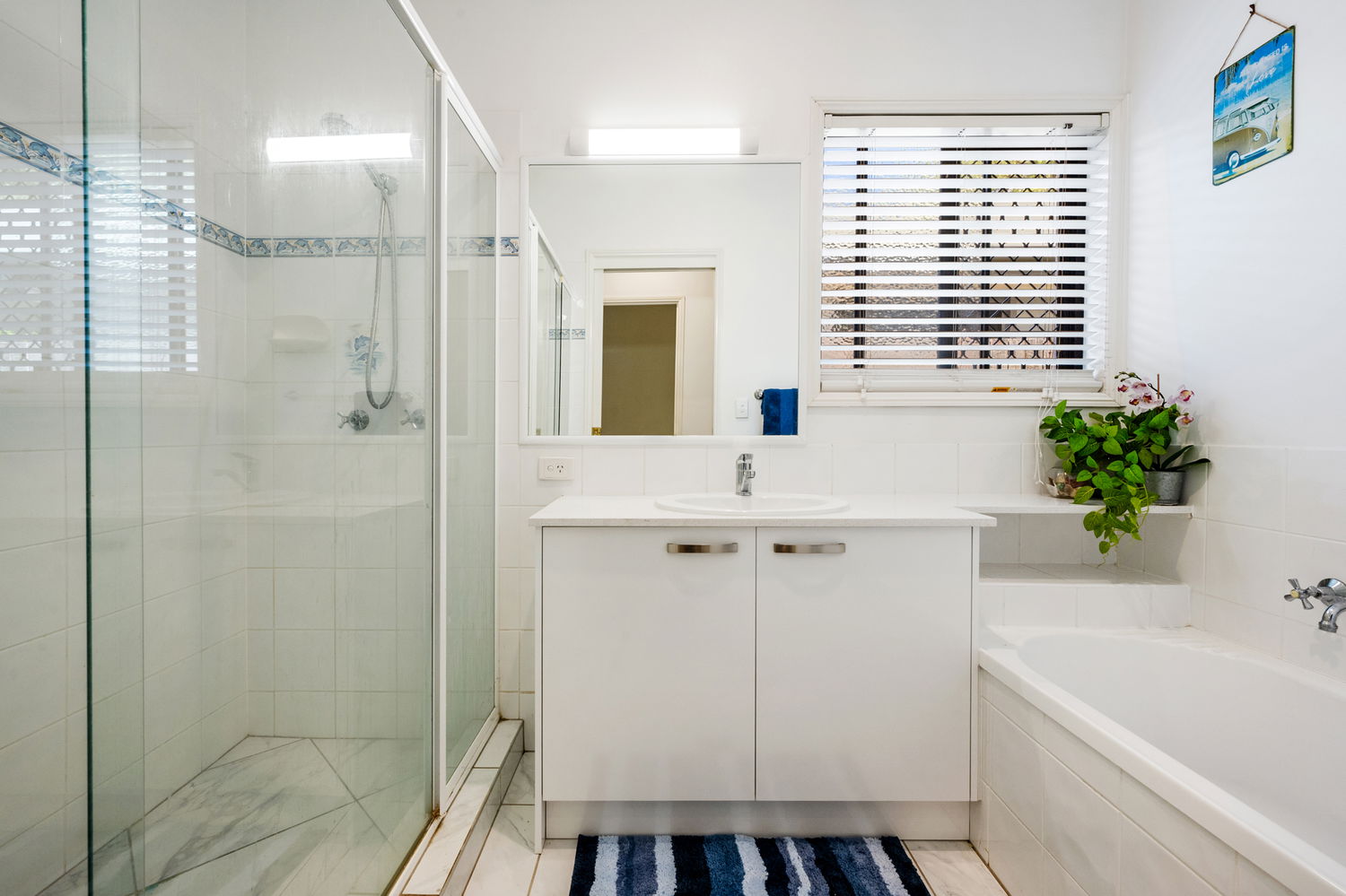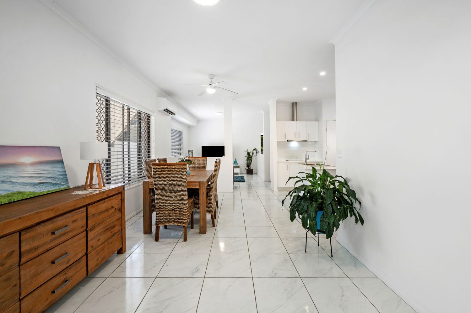-White timber Venetians throughout