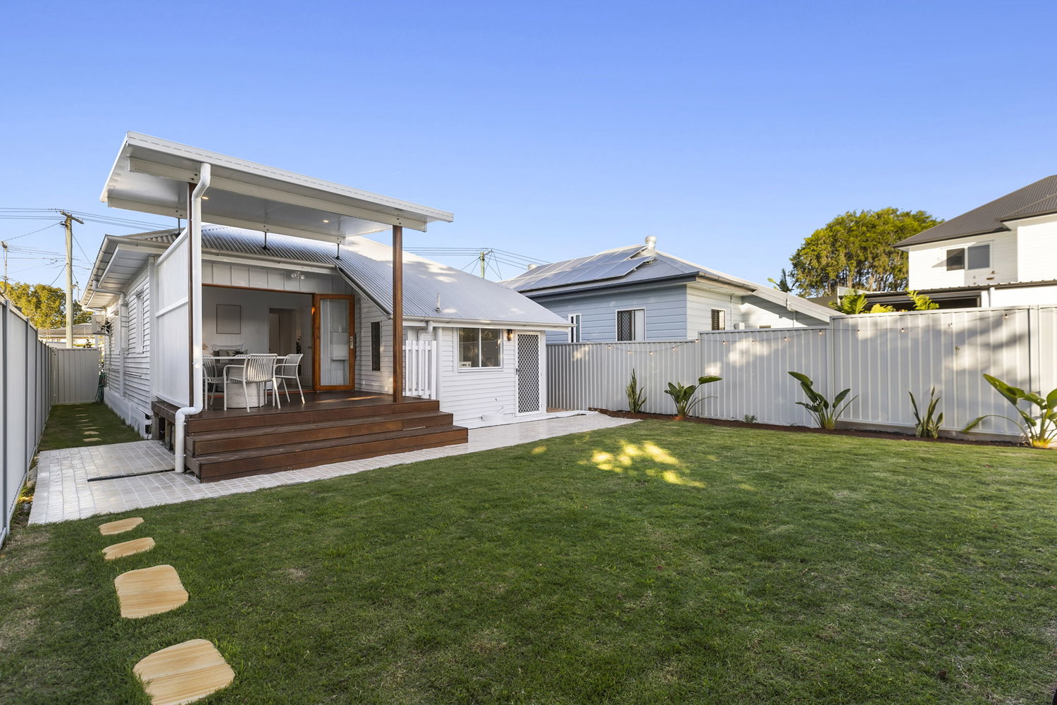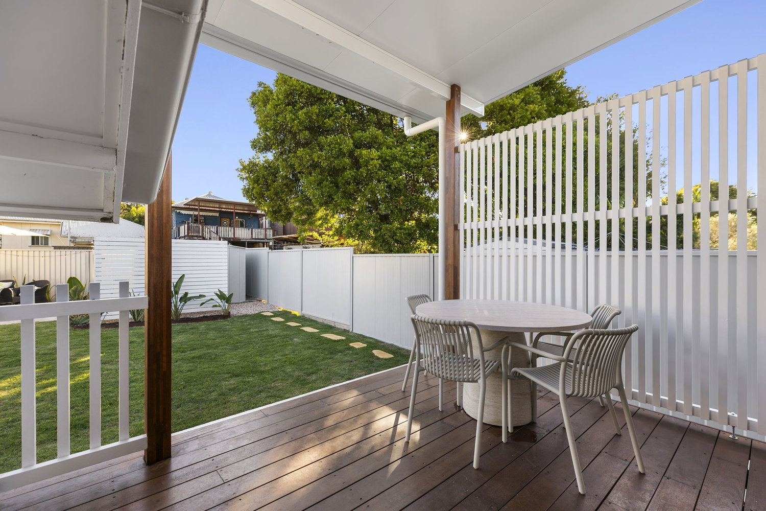 Designed with lifestyle in mind, the home opens out to a covered deck—perfect for morning coffees or winding down in the afternoon. Beyond this, a private outdoor zone with a built-in fire pit creates an additional space to gather, entertain or simply relax.