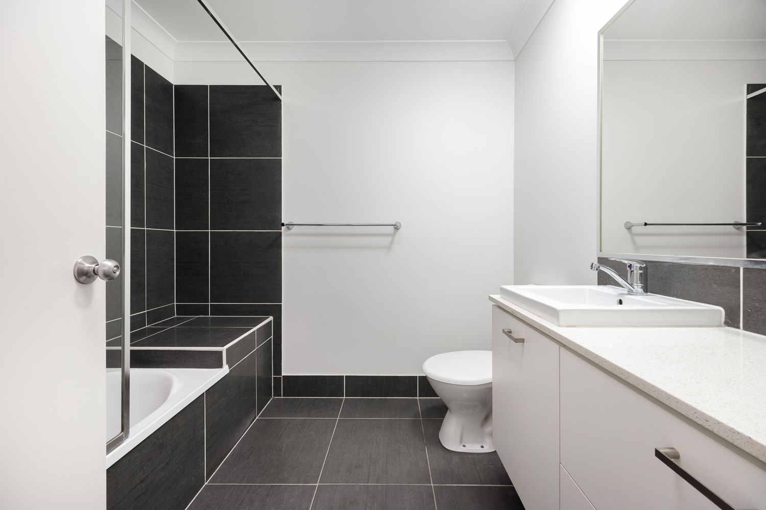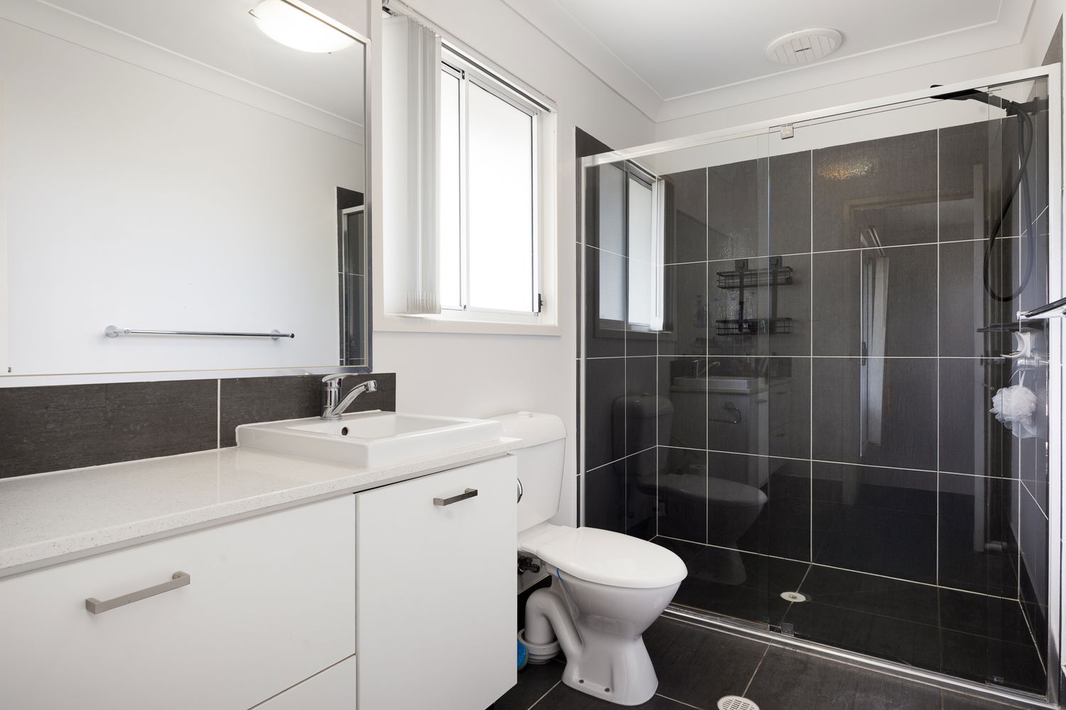 Upstairs, the master bedroom offers a peaceful escape, complete with a private ensuite, built-in wardrobe and a private balcony with a view. Two additional bedrooms are well-appointed with built-in robes and ceiling fans, while the central bathroom features both a bathtub shower — ideal for growing families or visiting guests.