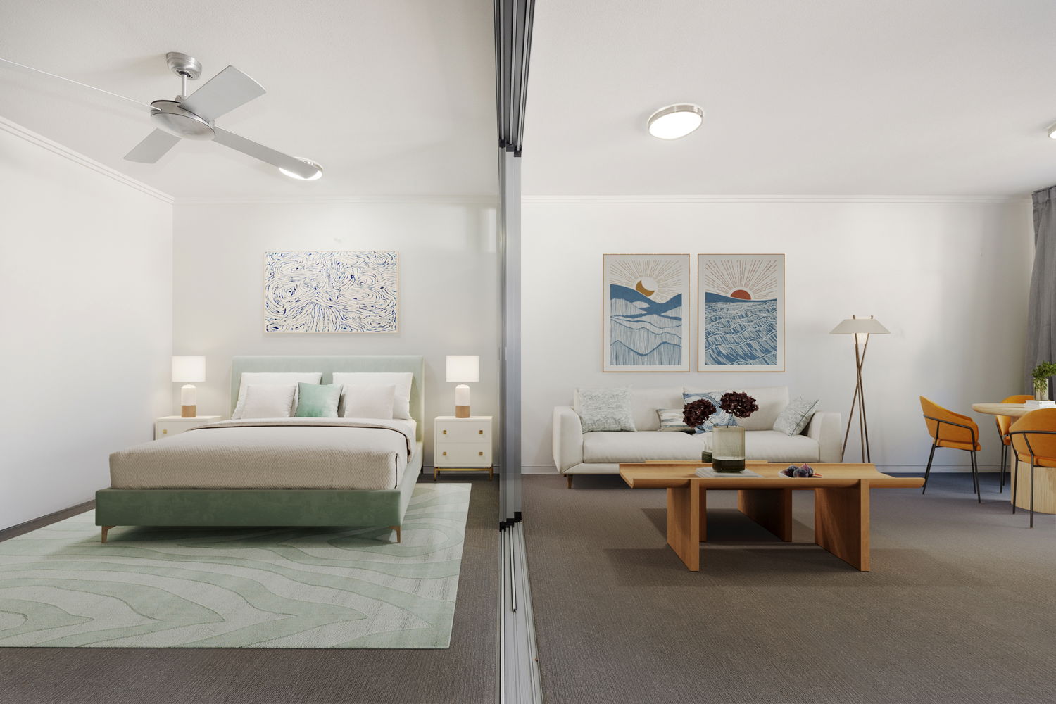 – Open-plan living with air-conditioning and ceiling fans