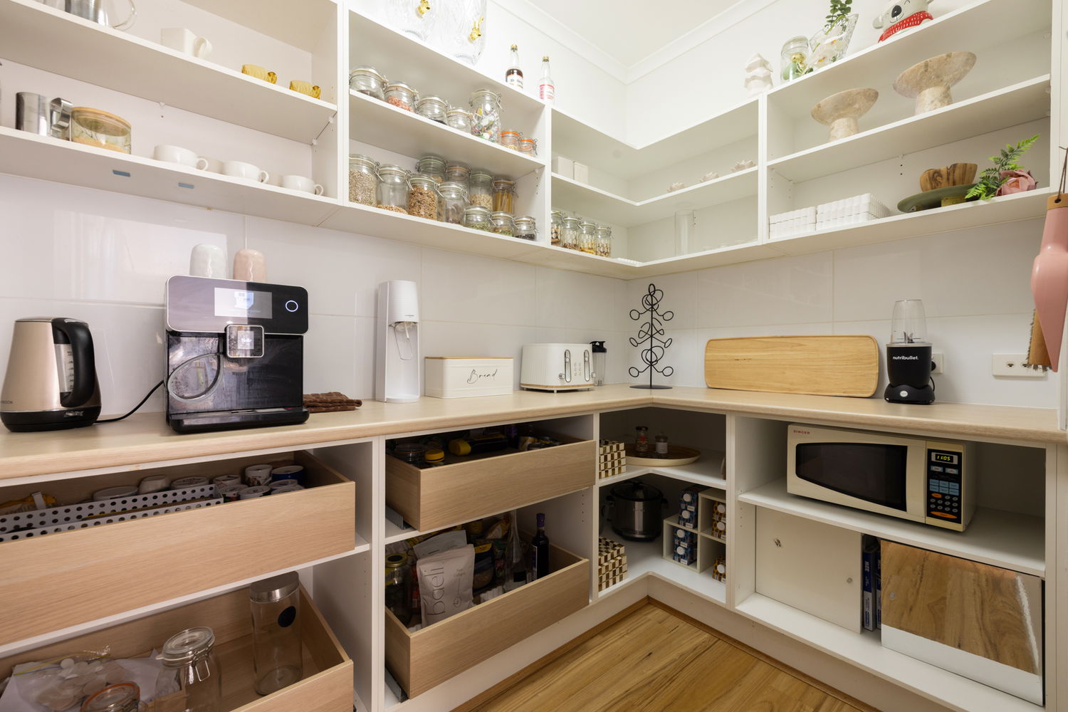 At the heart of the home, the modern kitchen impresses with a huge walk-in pantry, new electric oven, dishwasher and a large breakfast bar. Overlooking the open-plan dining and living areas, the soaring lofty ceilings create a warm, social hub where family and friends naturally gather.