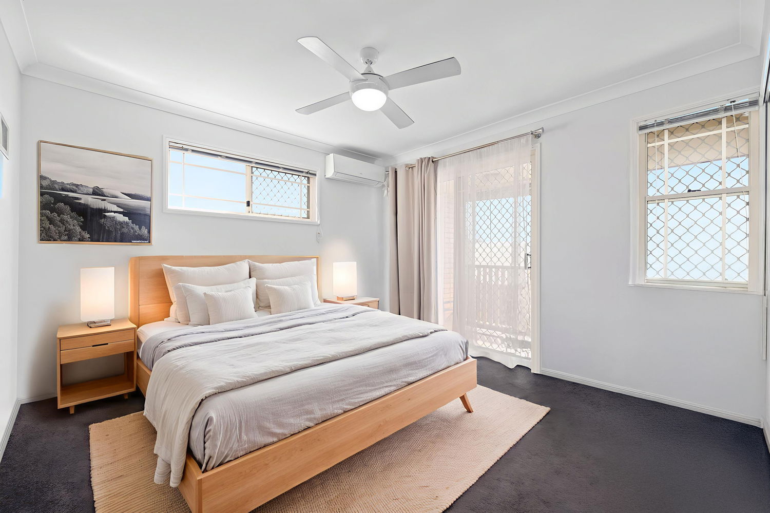 Upstairs, the master retreat is a true highlight. Enjoy sea breezes from your private balcony, relax in the spa bath of the well-appointed ensuite, and stay comfortable year-round with air conditioning. An additional upstairs bedroom is serviced by a third bathroom with a shower — ideal for family members or visiting guests. All bedrooms feature built-in robes, providing ample storage and functionality throughout.