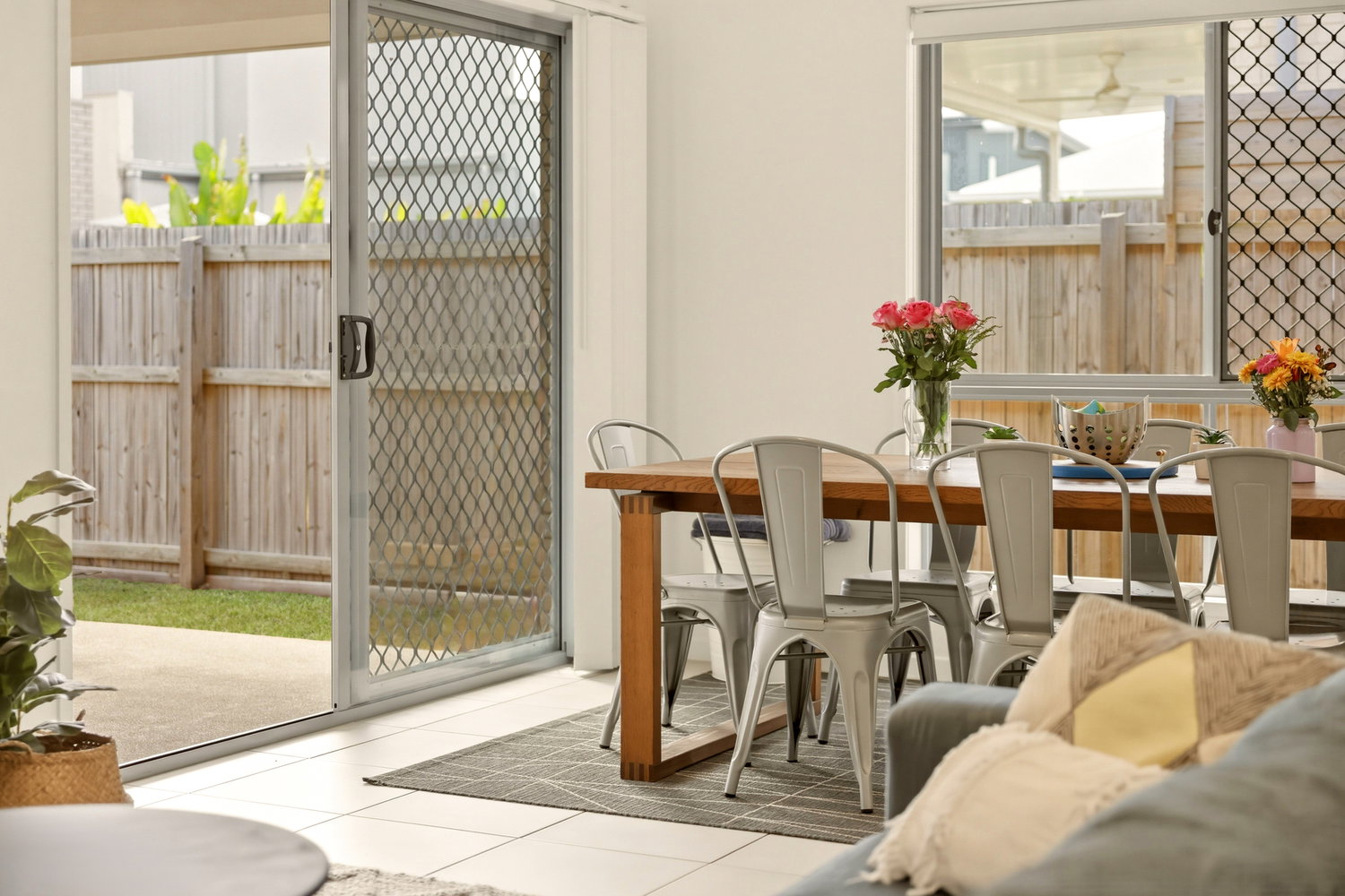 Sliding doors open to a covered alfresco area, creating a natural extension of the living space and offering a relaxed setting for entertaining or unwinding outdoors.