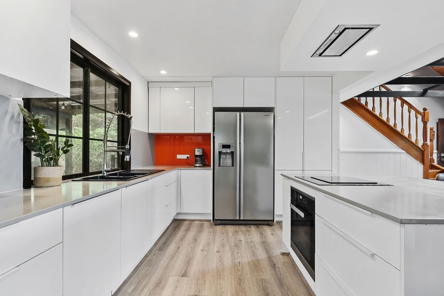 A stunning and renovated kitchen is the hub of the home and boasts sleek lines and calming hues with all the modern conveniences. Showcasing ample bench space with breakfast bar, large pantry, dishwasher, Miele electric oven with AEG cooktop, and soft-close cabinetry on 3 banks of pot drawers. Commanding prime position in the home, you will find yourself always able to stay connected to the conversation with friends and family especially with the dining area and family room nearby flowing out to the large private balcony.