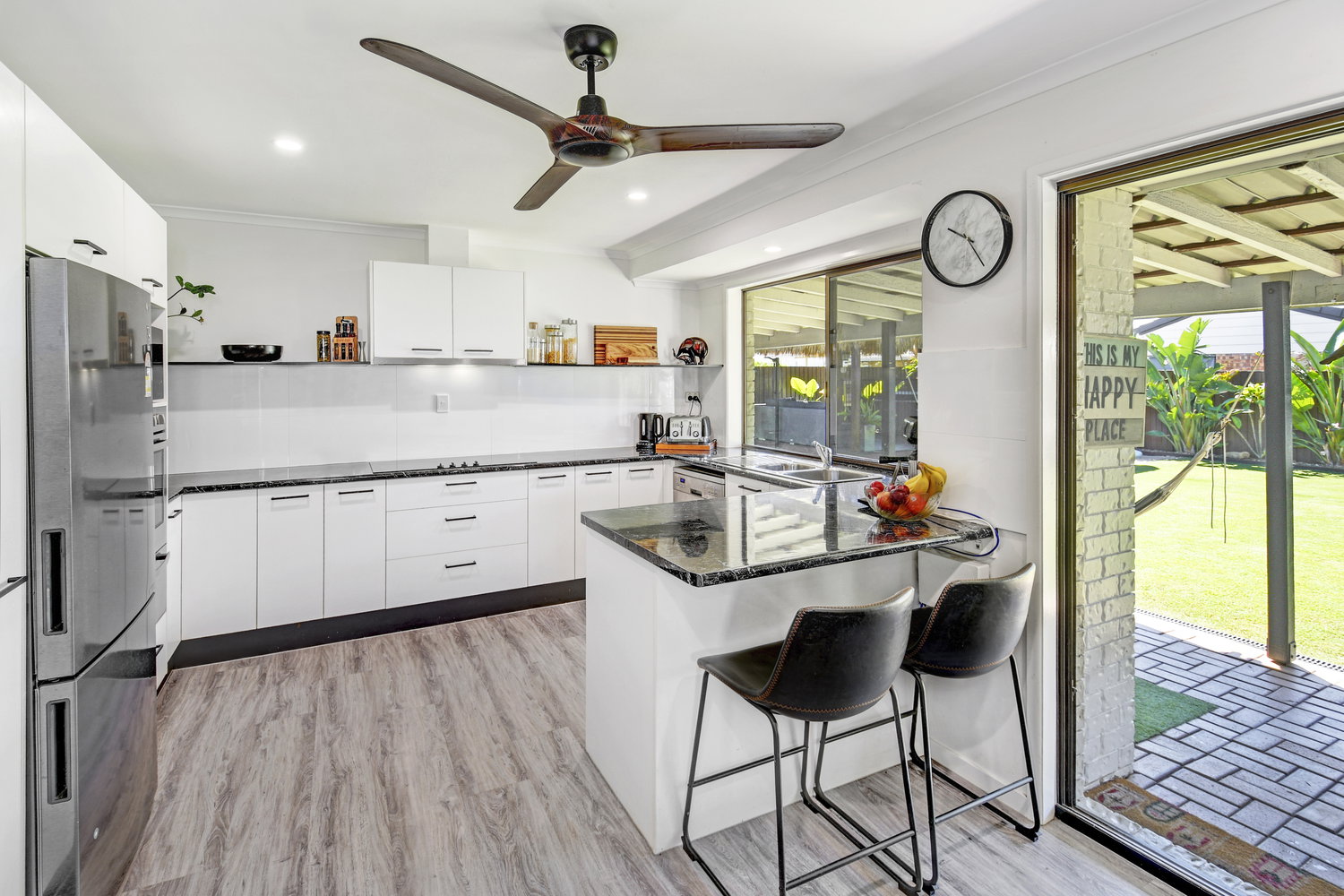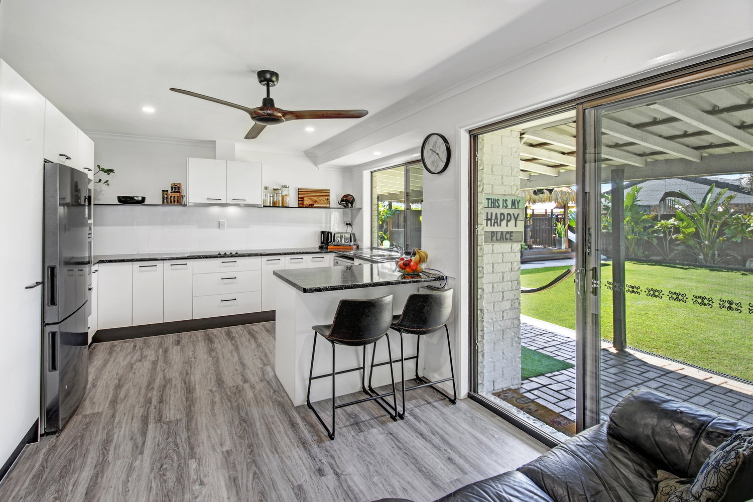 Inside, double-glazed windows ensure the home remains cool, quiet and energy-efficient year-round — a considered renovation touch that speaks to the care invested across the property. Three generous bedrooms and two bathrooms serve families, downsizers and professionals with equal ease.
