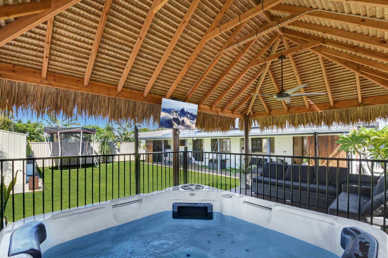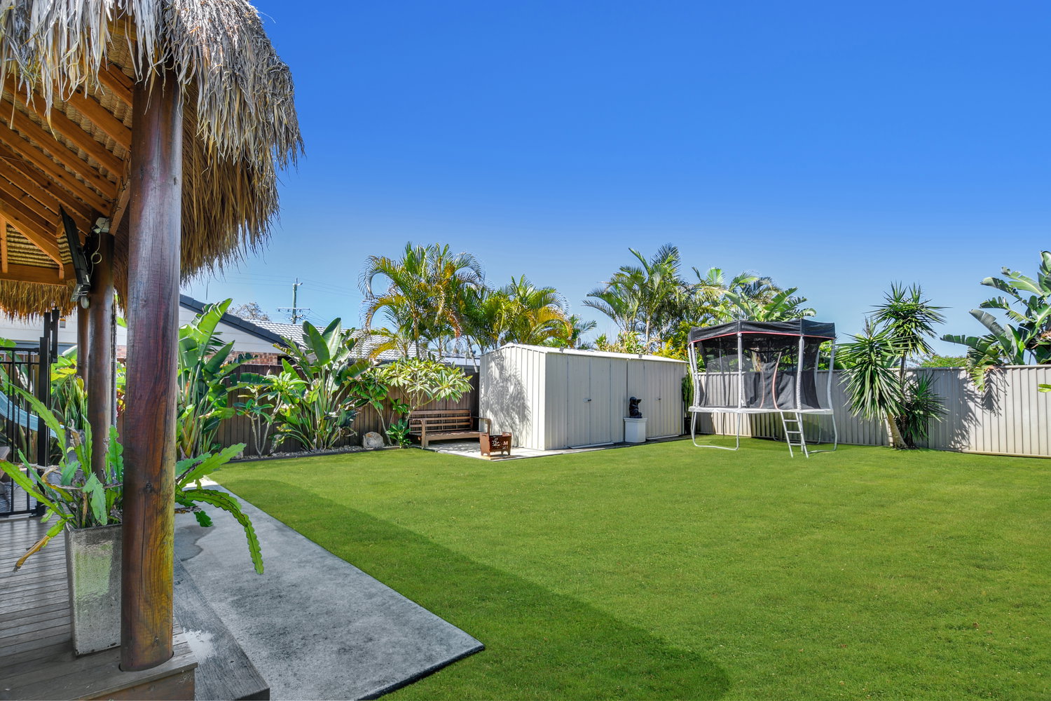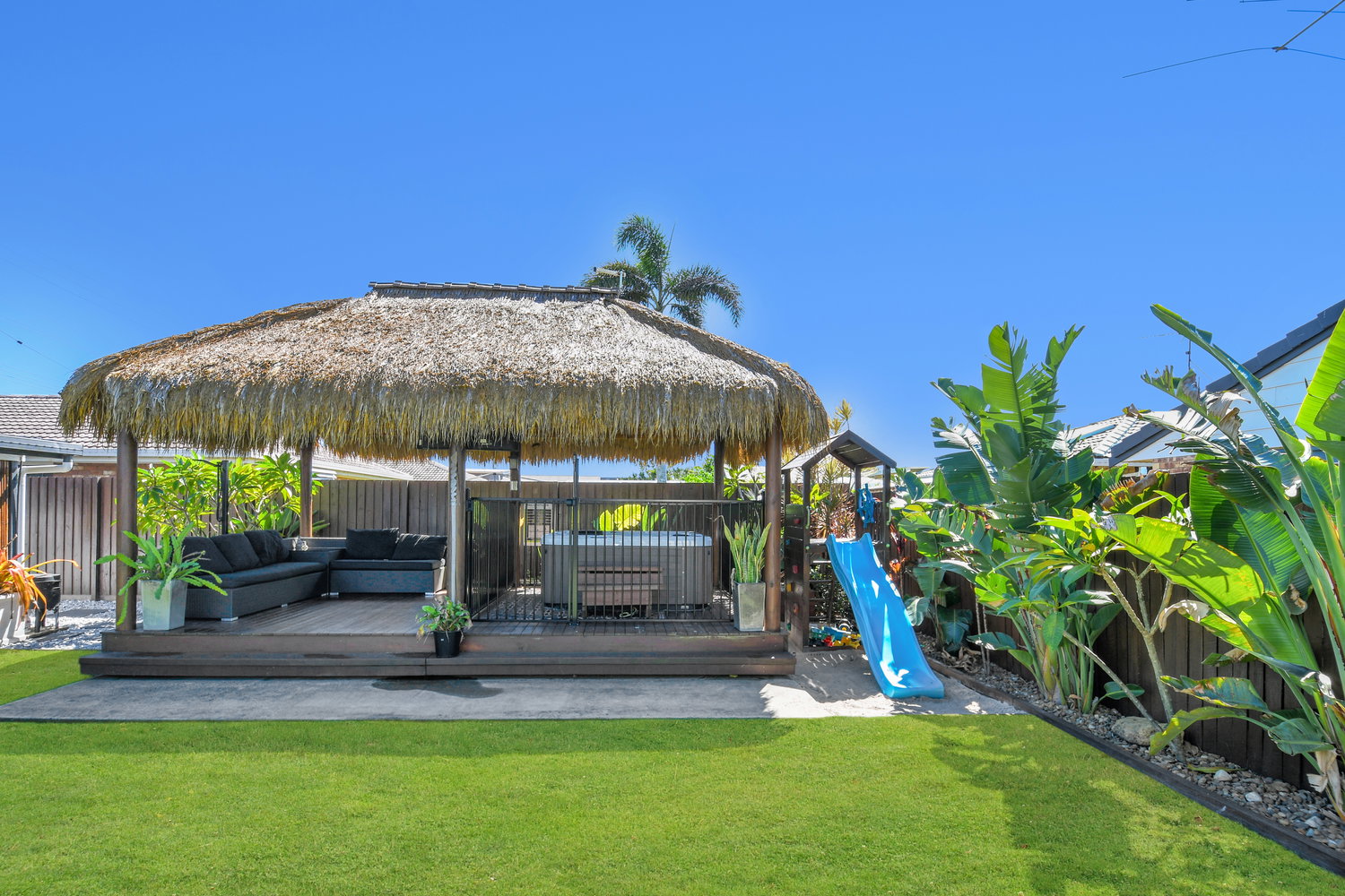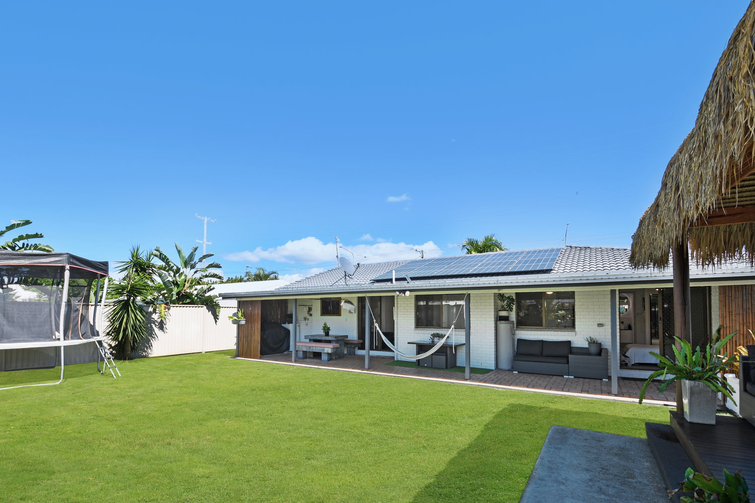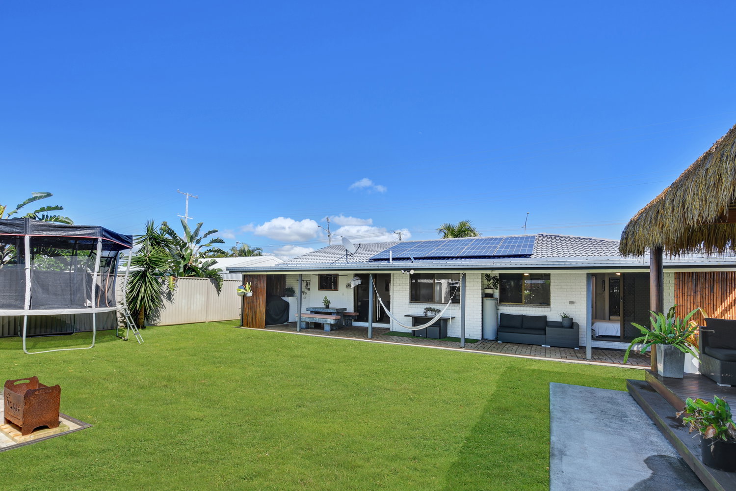 Step outside and the backyard becomes something else entirely — a private sanctuary dressed in tropical calm. A large covered alfresco spills out to a beautifully appointed backyard where a Balinese-style gazebo sets the scene for evenings that need no particular occasion. Whether it’s a quiet night under the stars or a leisurely weekend lunch in the shade, the outdoor amenity here genuinely rivals what you’d find at a boutique resort — without ever leaving home.