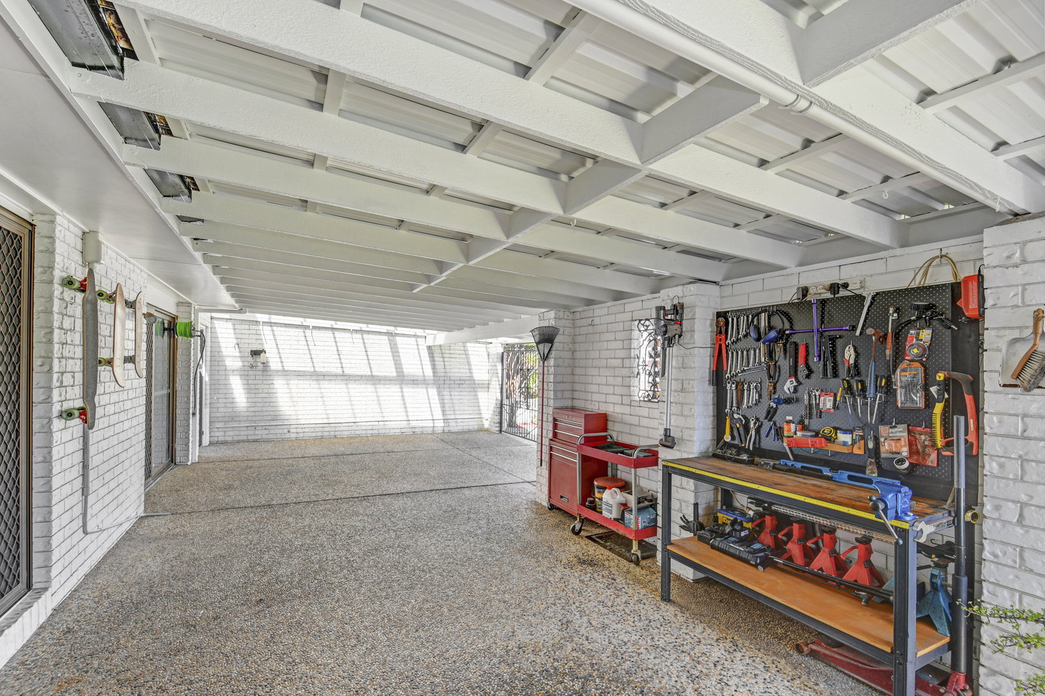 For those who need serious storage or workspace, the property delivers handsomely. A double lock-up garage accommodates up to three vehicles comfortably, or two cars alongside an extensive workshop setup. Two additional sheds round out the storage offering — a rare combination that tradespeople, hobbyists and collectors will immediately appreciate.