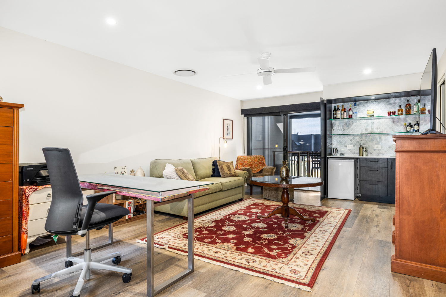 Upstairs, a built-in wet bar connecting to the spacious living room sets the scene for effortless entertaining, opening directly onto a private balcony where you can unwind or host guests in style, overlooking the park.
