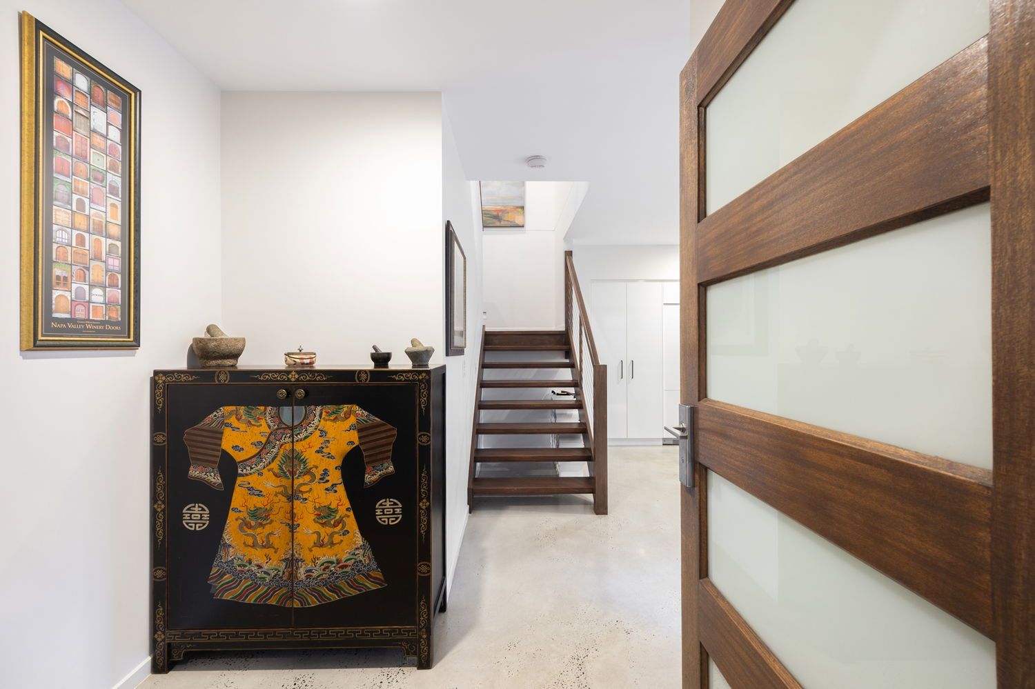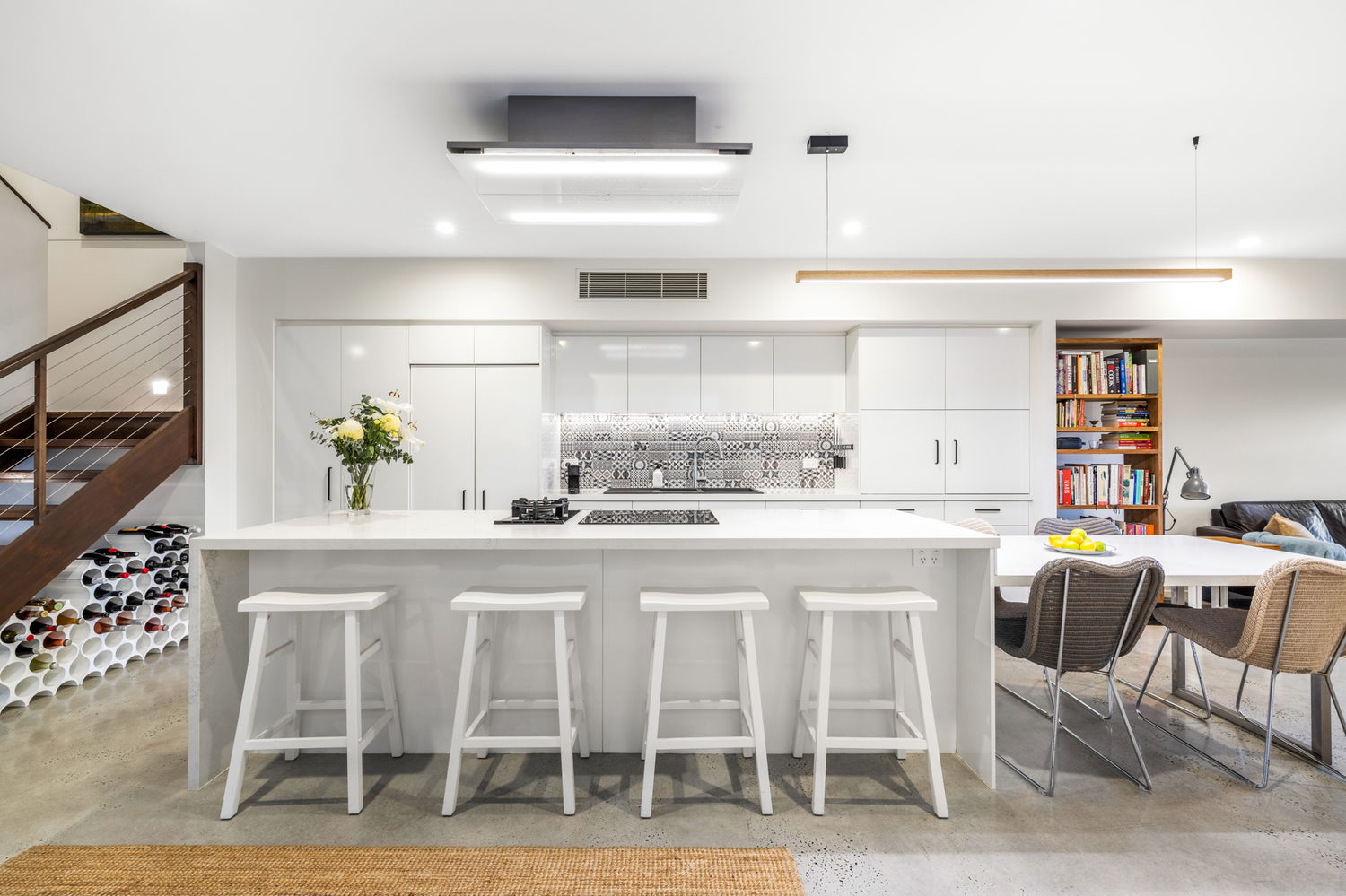As you arrive, you’ll notice one of Sunshine Cove’s most sought-after features, a private driveway with ample off-street parking. Step inside through the bespoke steel front door and be welcomed by a serene entryway oasis that immediately sets the tone for the home. Flowing through to the heart of the property, you’ll discover a designer kitchen that leaves nothing to chance. From the central induction cooktop with separate wok burner, statement range hood, 760 mm pyrolytic smeg oven, to the soft-close cabinetry and meticulous detailing, this kitchen is made for both entertaining and everyday luxury. It also features an integrated refrigerator and dishwasher, maintaining clean lines and enhancing the overall aesthetic.