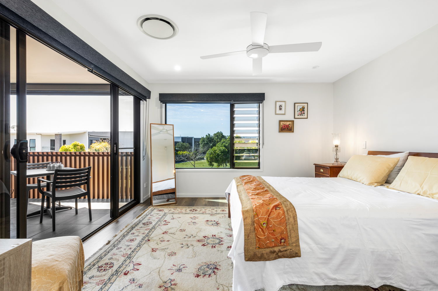 The upstairs master suite is a true retreat, complete with a walk-in wardrobe and a sophisticated ensuite. Additional bedrooms are generously sized with built-in wardrobes, ceiling fans, and ducted air-conditioning for year-round comfort.