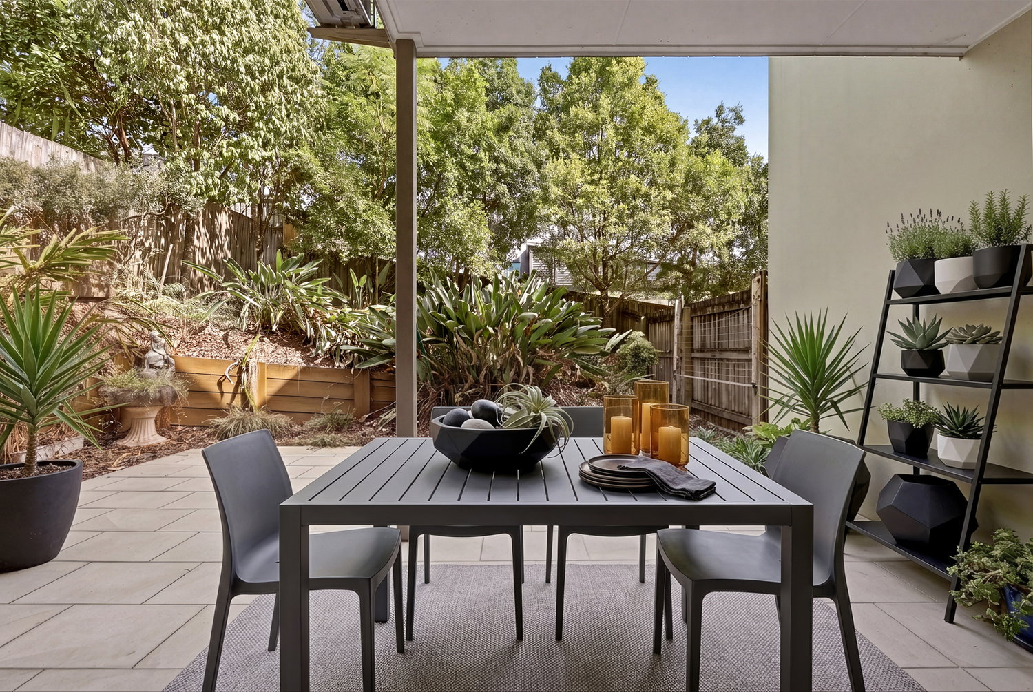 At its core, the main living level delivers a light-filled open-plan layout, seamlessly connecting the kitchen, dining and living spaces. This flows directly out to a generous balcony at the front and a private rear courtyard and patio, creating dual entertaining zones — ideal for hosting or simply enjoying different aspects throughout the day.
