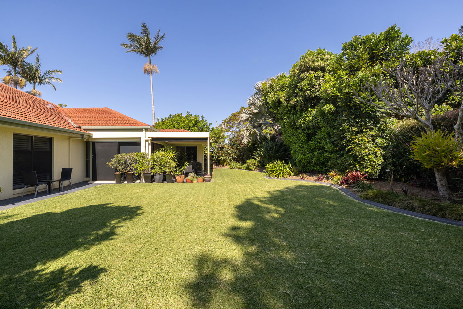 • 873m2 flat landscaped block, lush grass spaces and fully landscaped