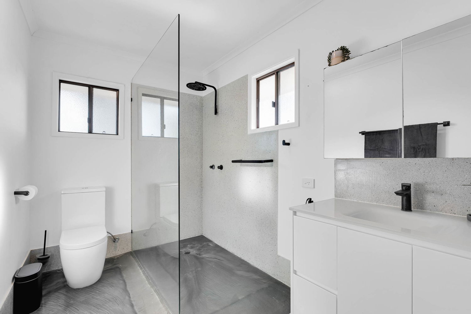 – Enormous open plan living with air conditioning and dual sliding door access opening onto the veranda, catching the sea breezes all day long