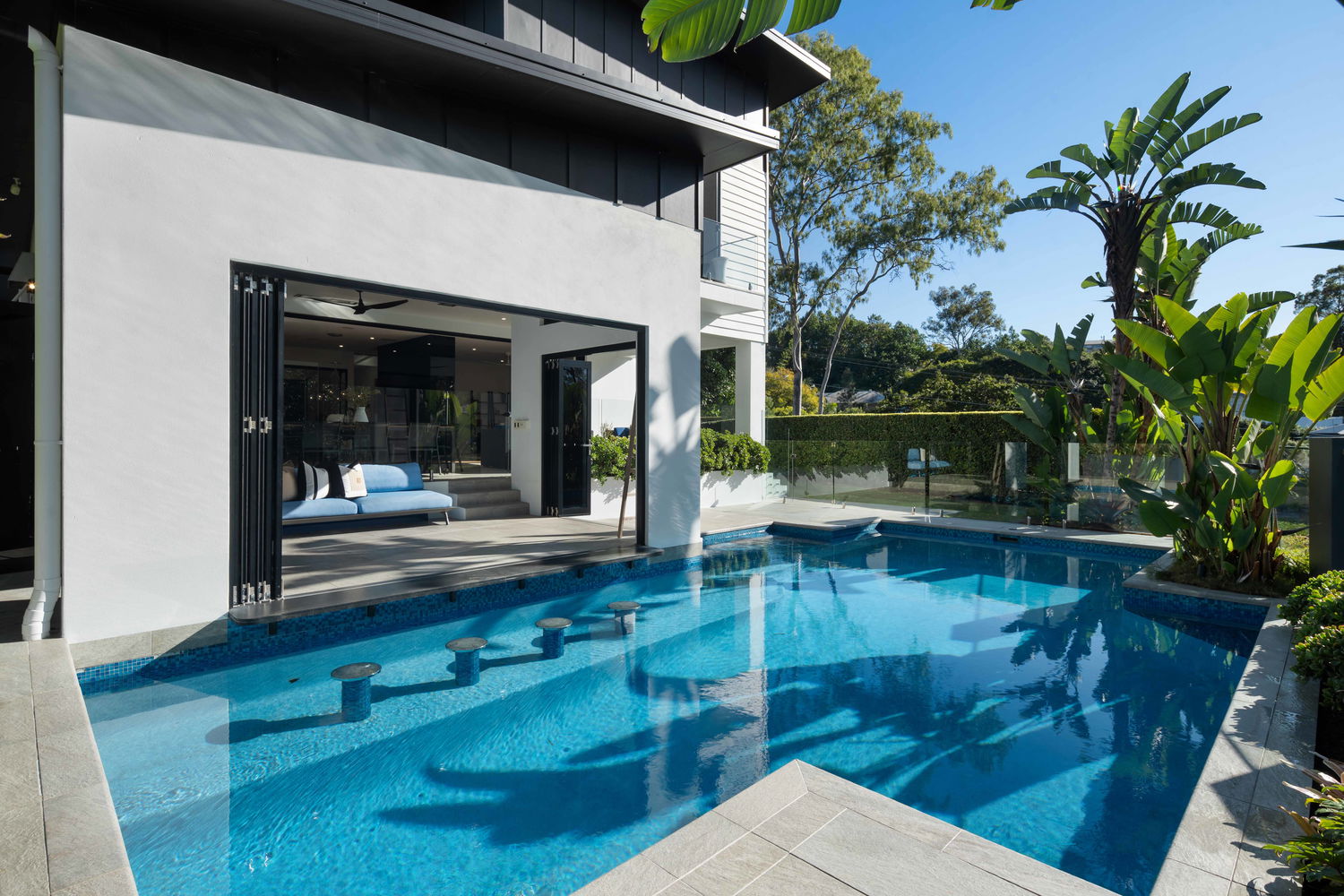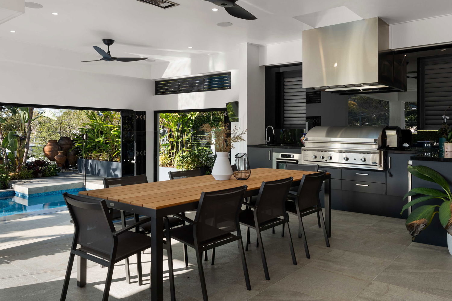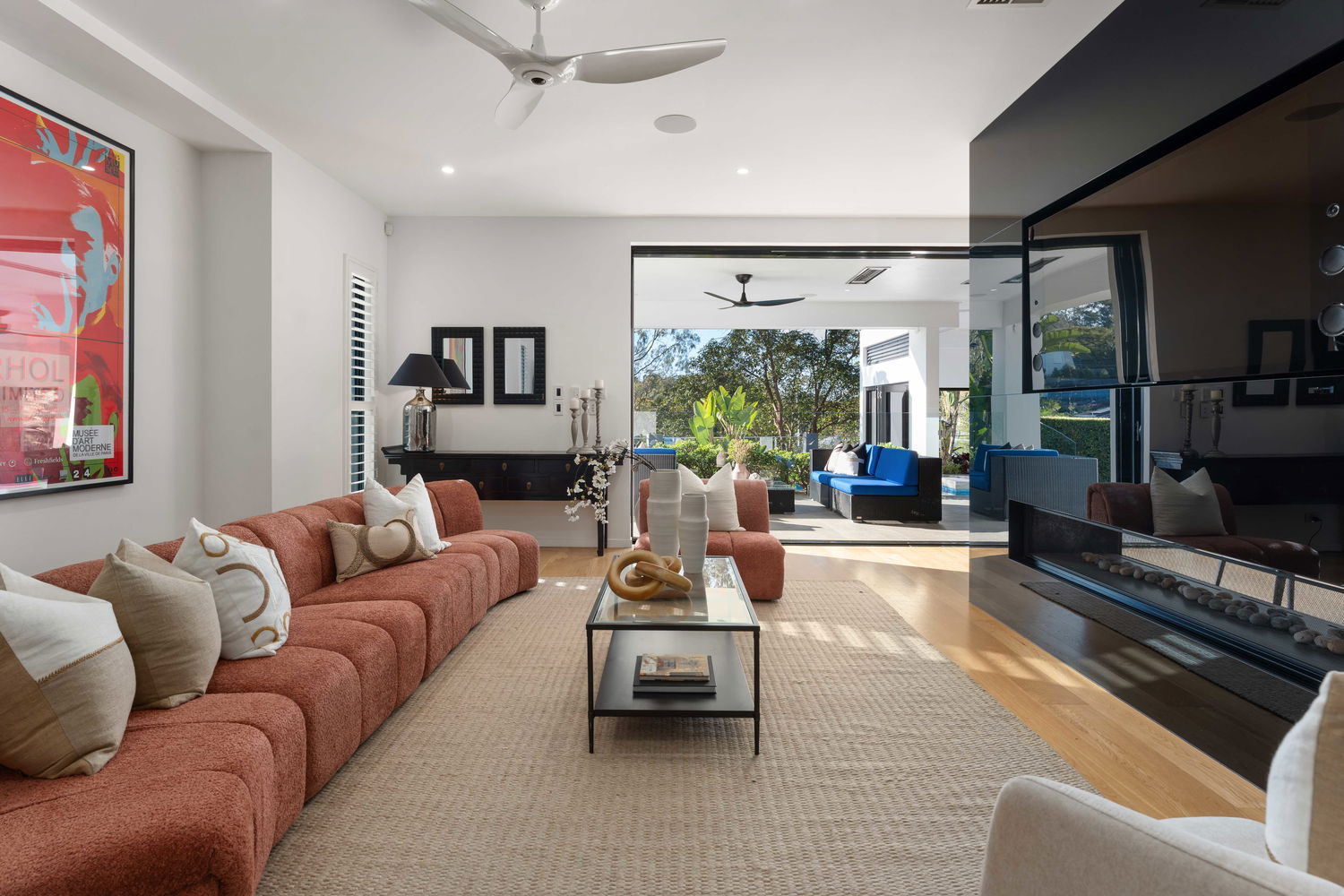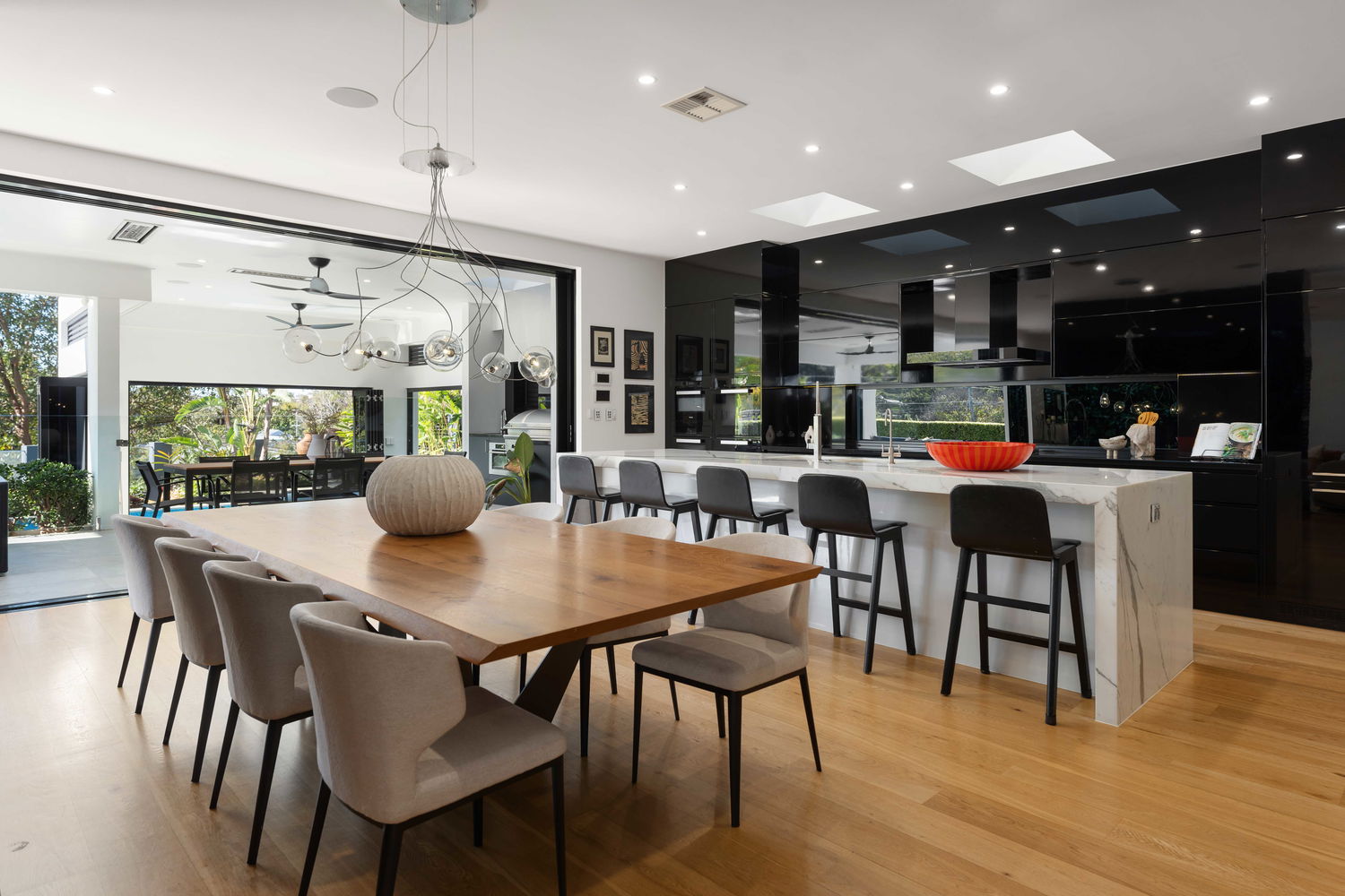 Triple stacker doors hidden in the wall create a seamless extension from this indoor oasis to the poolside terrace, outdoor kitchen with built in BBQ and lawns, which are effortlessly interwoven to form a sanctuary for large-scale entertaining, intimate gatherings and leisurely relaxation.