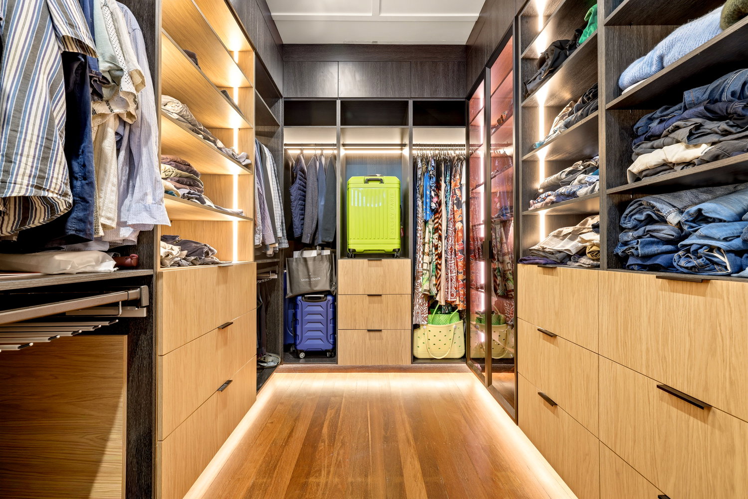 • Large master bedroom walk-in wardrobe with custom cabinetry & lighting