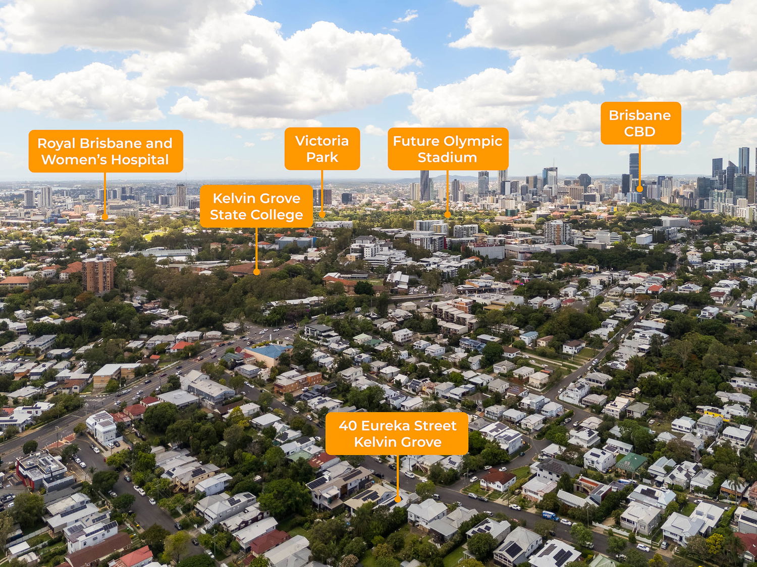 Perfectly positioned within easy walking distance to Kelvin Grove State College, QUT Kelvin Grove campus, and Victoria Park, soon to be home of the Olympic Stadium, this is city living at its finest. Enjoy the lively Kelvin Grove Village Markets every Saturday, excellent transport options, and close proximity to some of Brisbane’s best public and private schools, all just five minutes from the CBD.