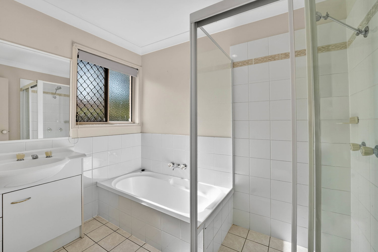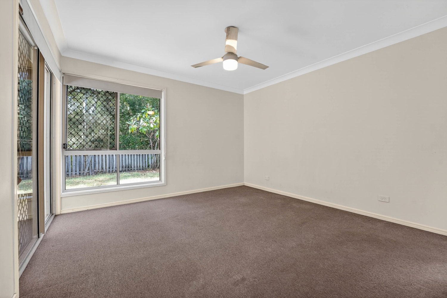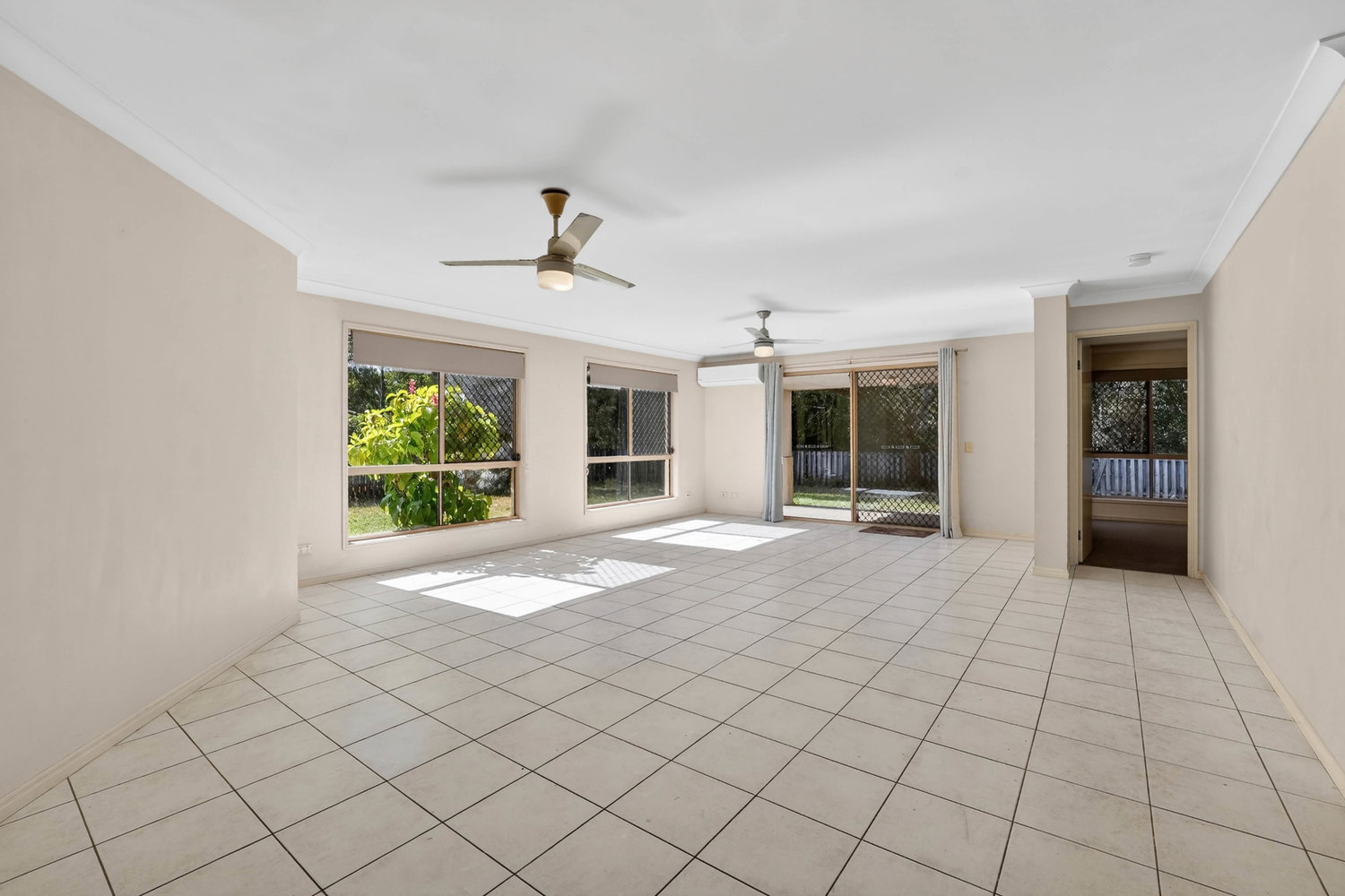 All three bedrooms are well-appointed with ceiling fans. Bedrooms two and three include built-in wardrobes, while the master suite features a walk-in robe, private ensuite, and direct access to the rear patio. The main bathroom is thoughtfully designed with both a separate shower and bathtub, catering perfectly to families.