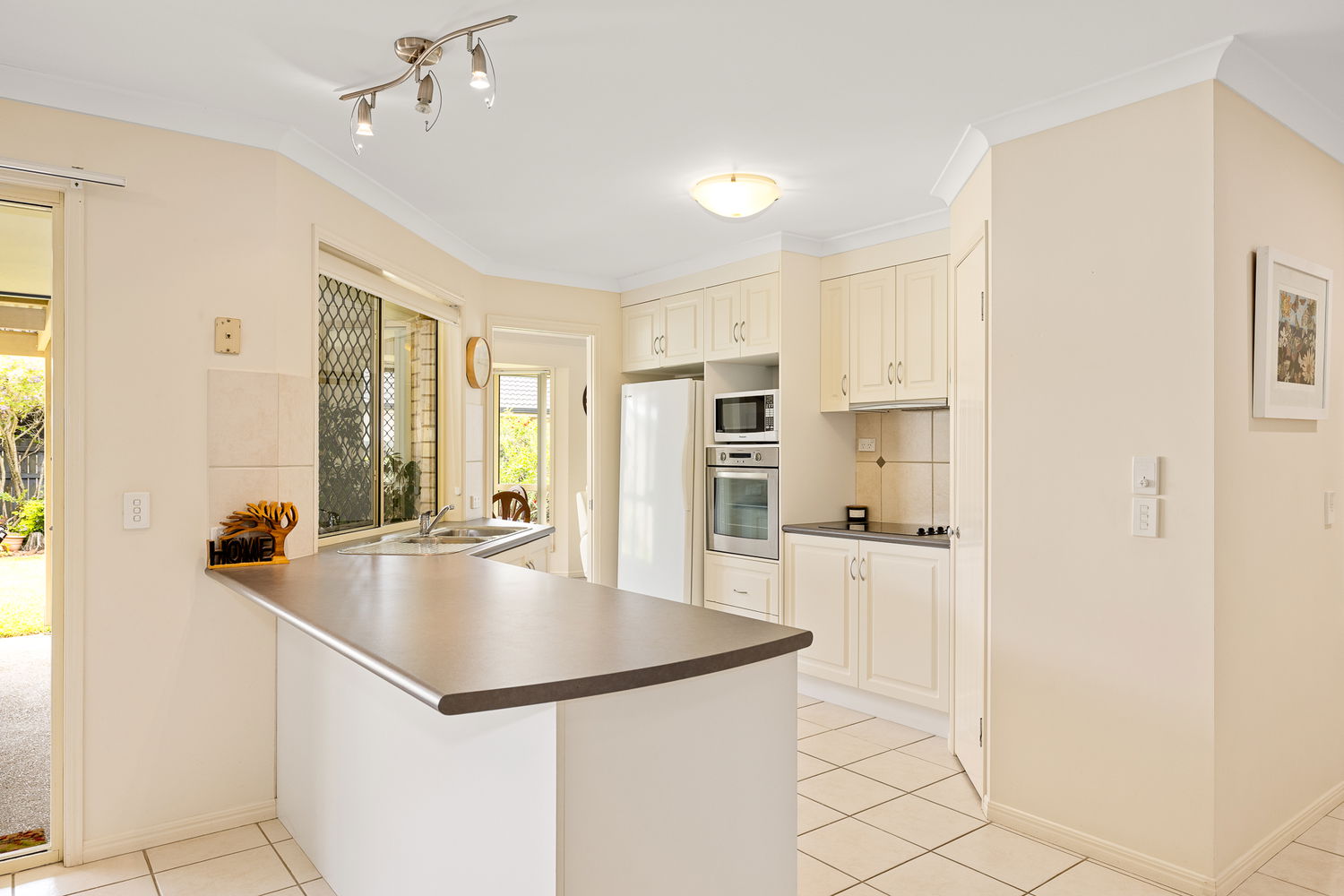 Thoughtfully designed with the Australian family in mind, the traditional floorplan features multiple living areas that connect effortlessly, providing flexibility for both everyday living and entertaining. Large windows throughout the lounge, dining and living spaces invite an abundance of natural light enhancing the home’s bright, open, and airy atmosphere. At the center of the home sits the kitchen, complete with ample cupboard storage, a dishwasher, ceramic cooktop and oven. With a clear outlook over the patio and outdoor entertaining area, the kitchen is perfectly positioned to make hosting guests or simply managing day to day family life both practical and enjoyable.