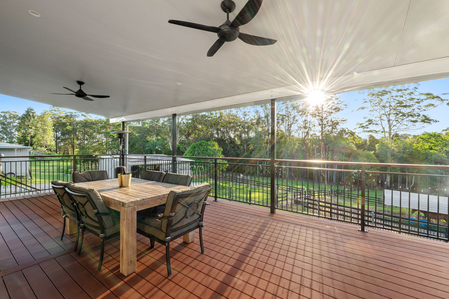 Step inside to discover a warm and inviting interior where classic Queenslander charm meets tasteful contemporary updates. The home flows effortlessly to a spacious entertainers’ deck, perfectly positioned to capture gentle breezes and overlook the picturesque horse yards, equestrian arena, small dam and greenery beyond – ideal for relaxed afternoons or hosting family and friends.