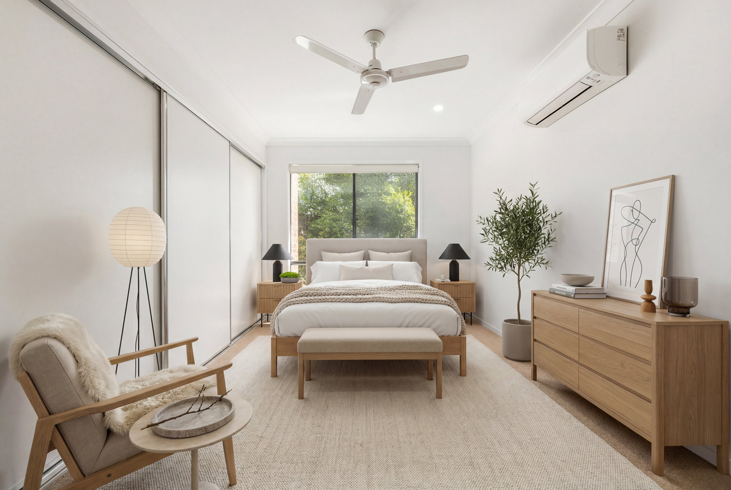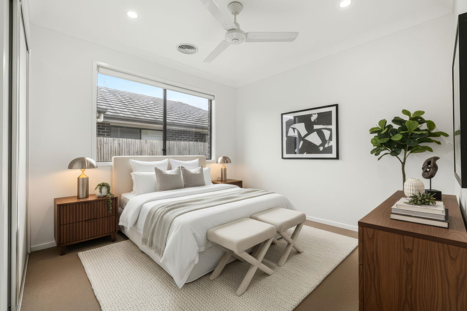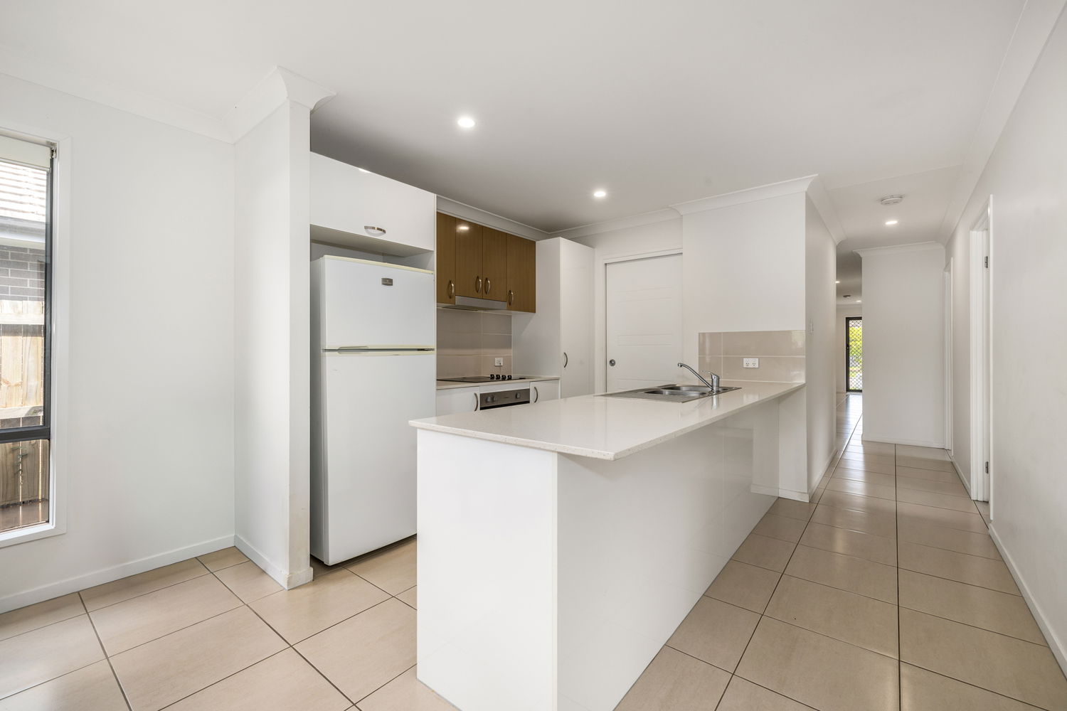 At the heart of the home is a modern open-plan kitchen, complete with quality appliances, Caesar stone benches, microwave nook, electric cooktop and oven, ample storage, and a breakfast bar that connects seamlessly to the living and dining areas. The spacious light and airy living/dining room with air conditioning and tiled flooring, opens out to the undercover patio providing a great entertaining space and somewhere to relax.
