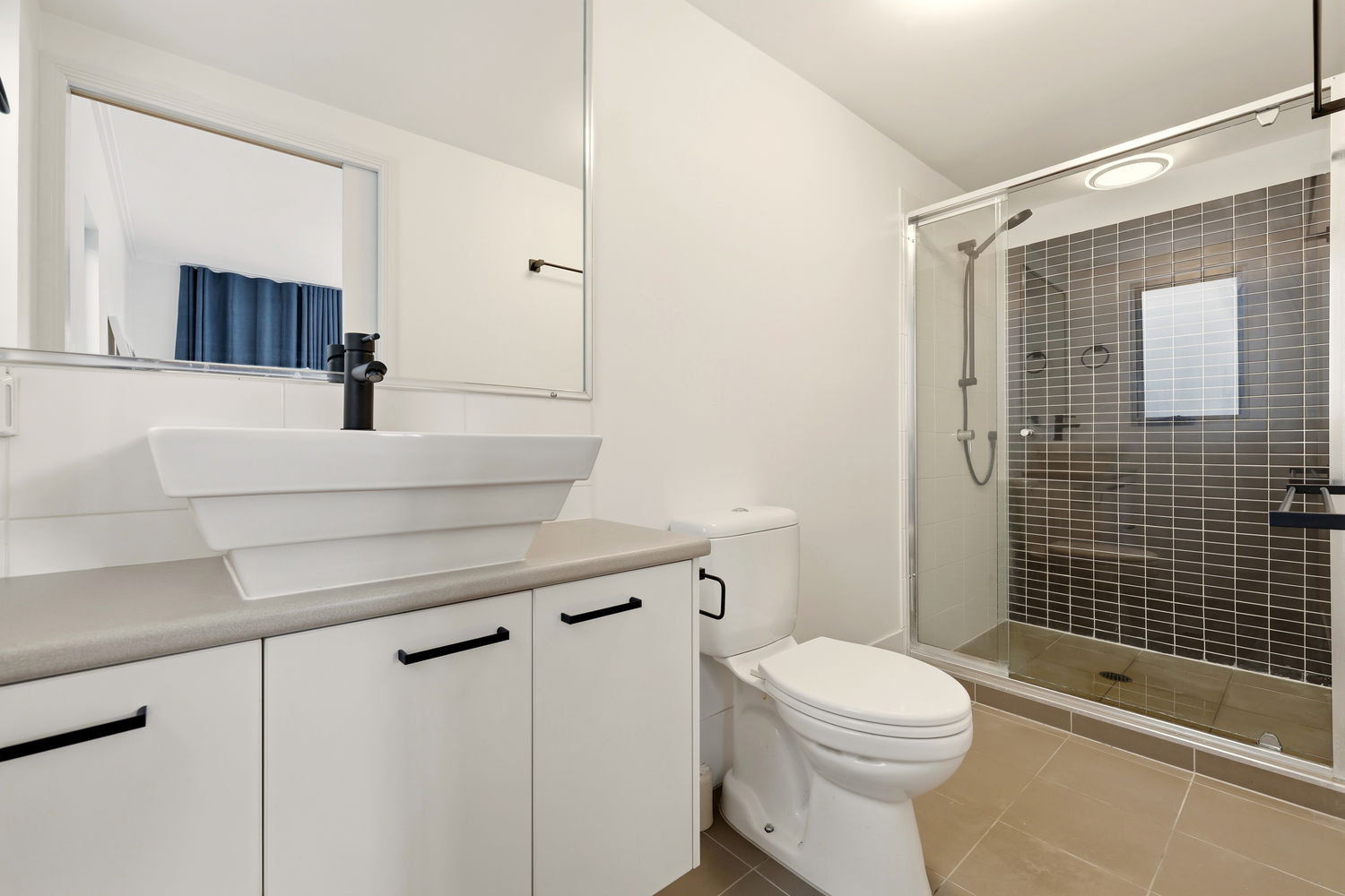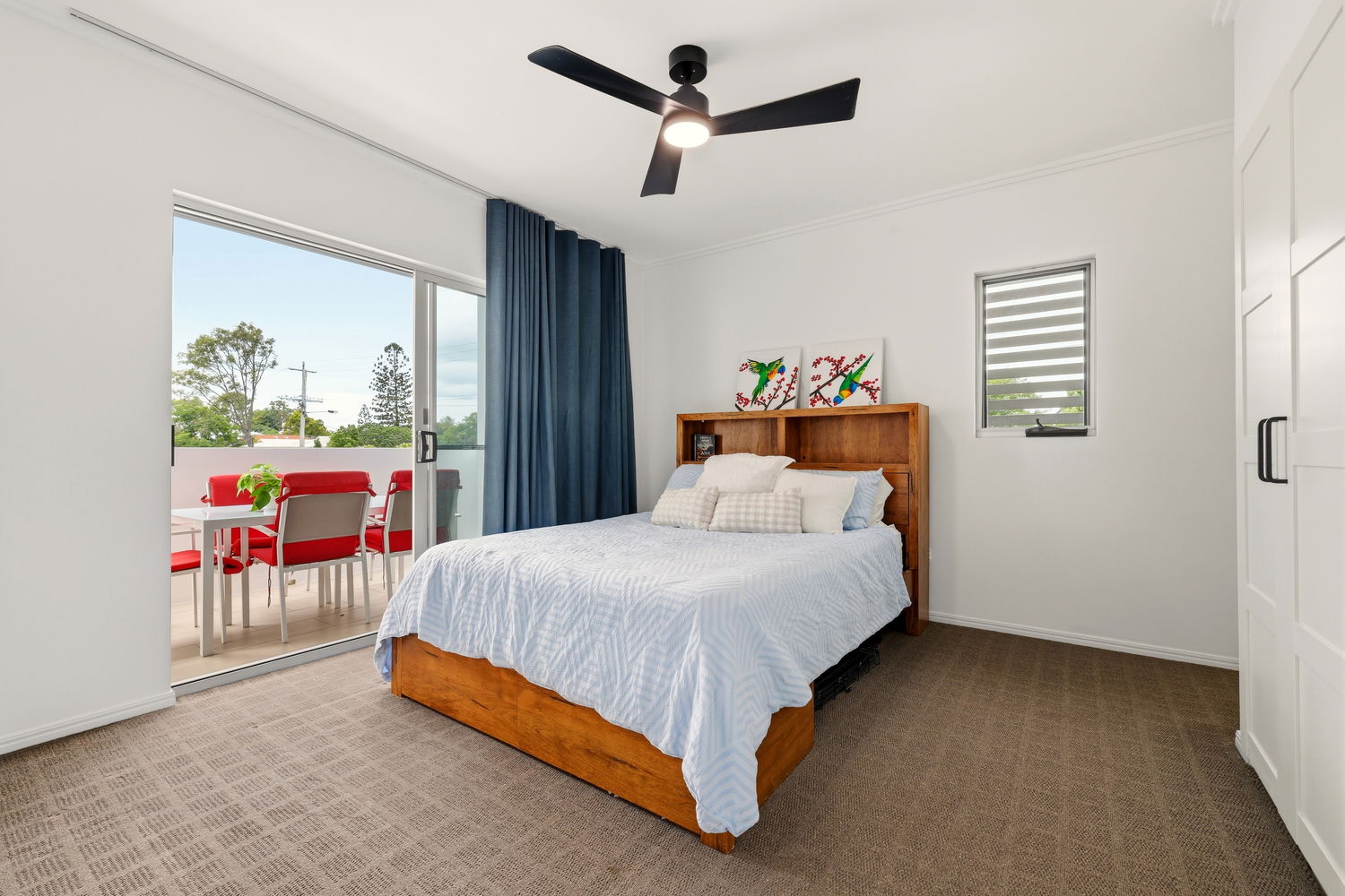 *The master bedroom is a great size and features air-conditioning, balcony access, a stunning wardrobe, shelving nooks and a sleek ensuite.