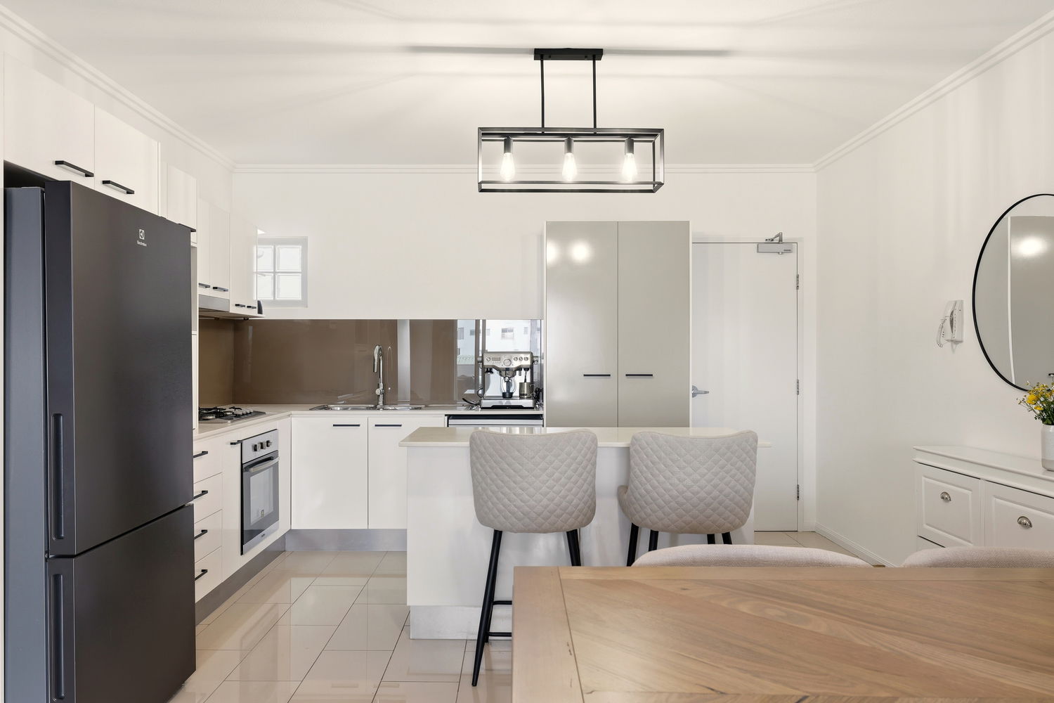 *A well appointed kitchen with ample bench and cupboard space, gas cooking, stainless steel appliances and great flow to connect to the adjoining living spaces.