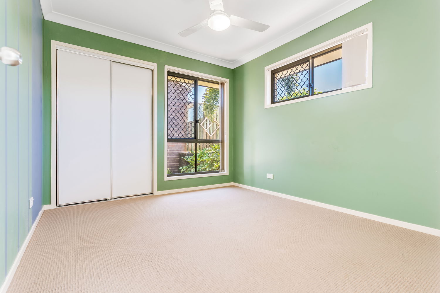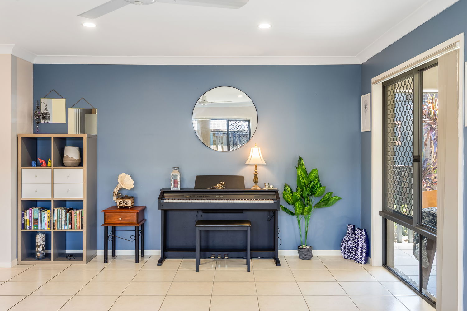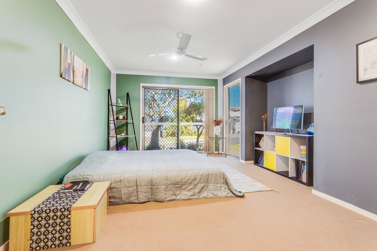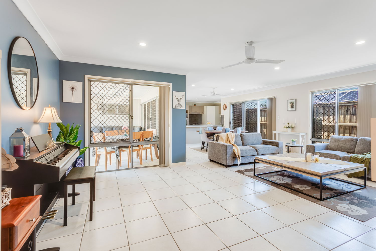 Accommodation is cleverly zoned for privacy. The main bedroom is tucked away at the rear and enjoys a lovely outlook over its own private courtyard garden, accessed by sliding doors. This leafy space feels like a little sanctuary – ideal for a quiet morning coffee or winding down at the end of the day. A walk-in robe and ensuite complete this peaceful retreat. Bedrooms two and three are set in their own wing close to the family bathroom and laundry, making it ideal for children or guests. Both are well-proportioned with built-in robes and ceiling fans.