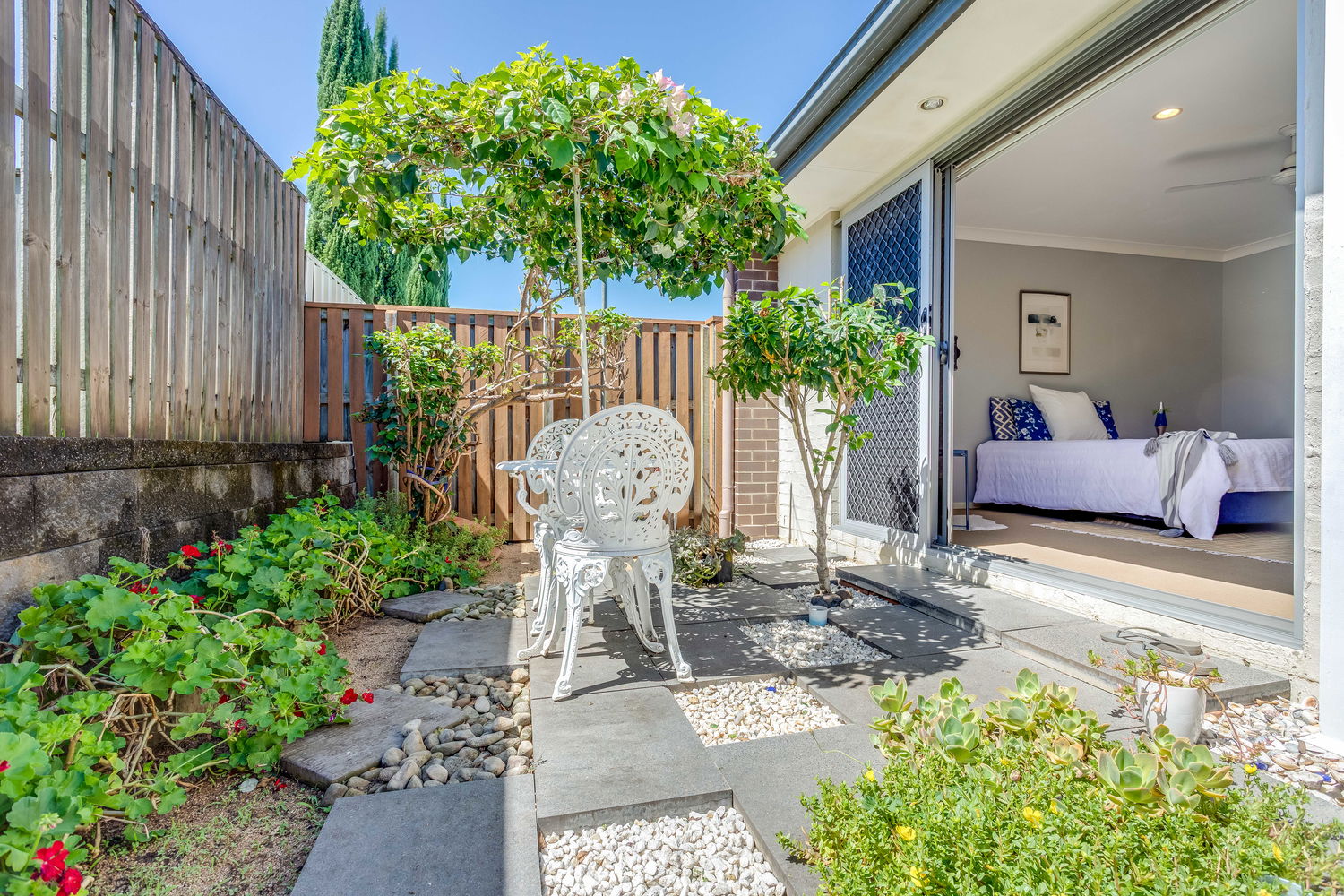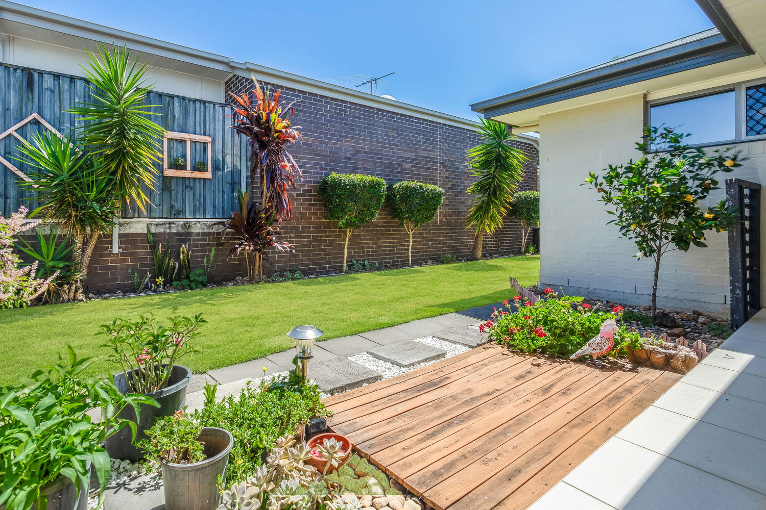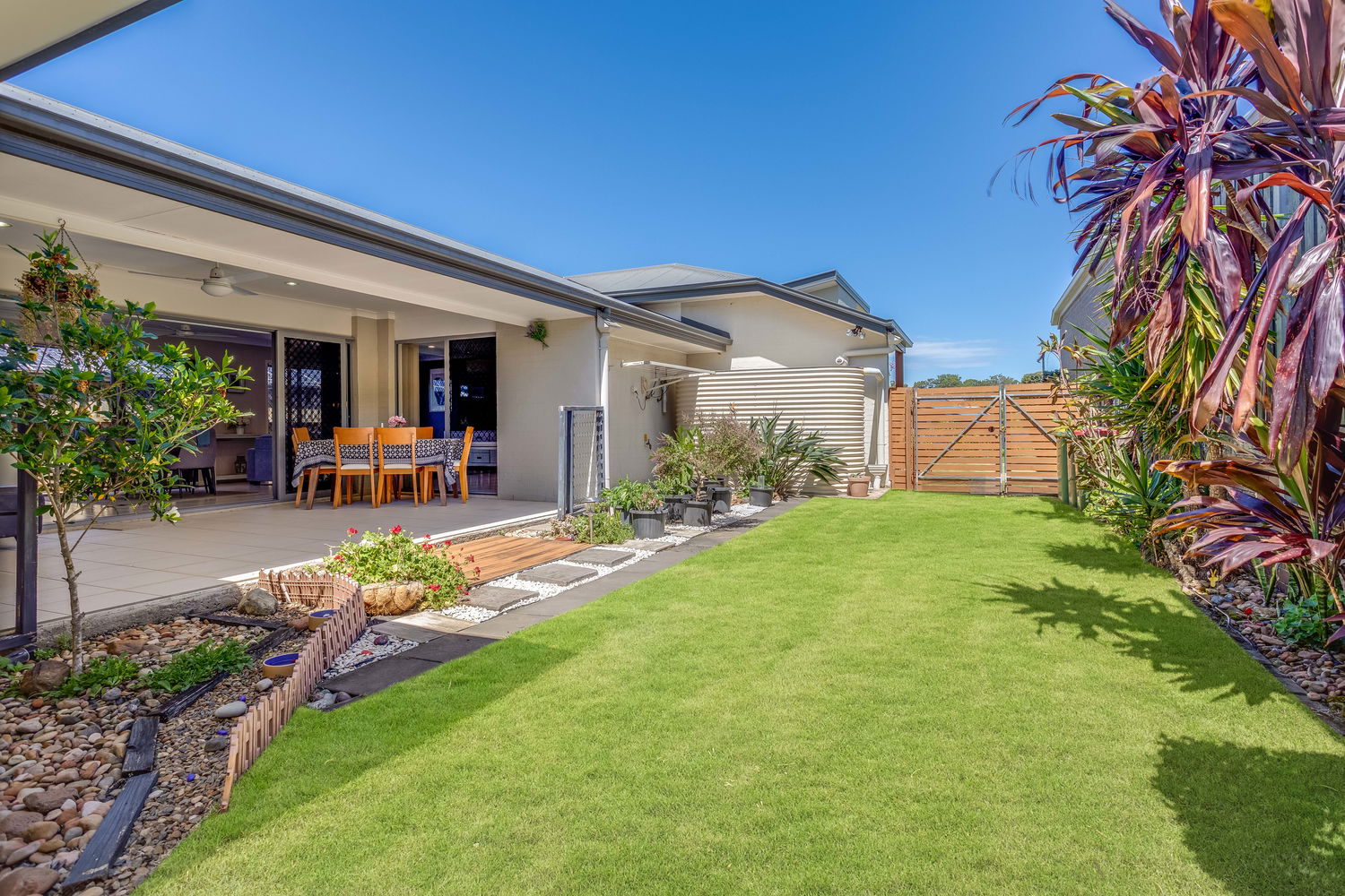 Outside, the property really comes into its own. As well as the private courtyard off the main bedroom and the central alfresco area, there is a surprisingly generous rear yard with lush lawn and established planting. Gated side access makes it easy to move trailers, bikes, garden equipment or the kids’ toys through to the backyard without going through the house, and gives you added flexibility for future use of the block. The gardens have been thoughtfully landscaped to be attractive yet low-maintenance, so your weekends can be spent enjoying the space rather than working on it.
