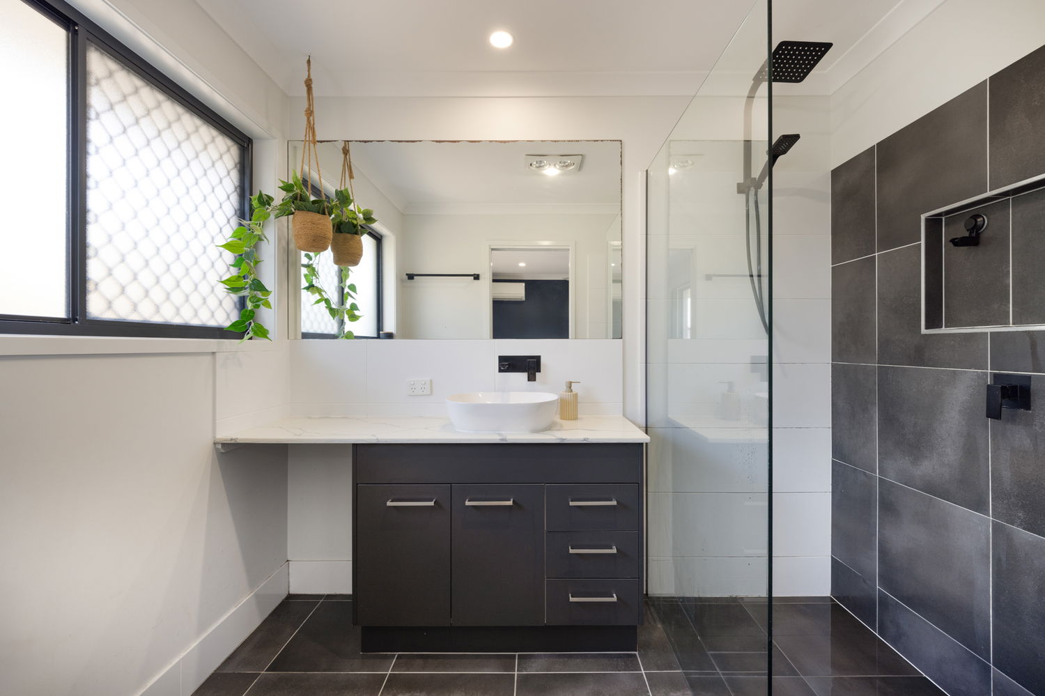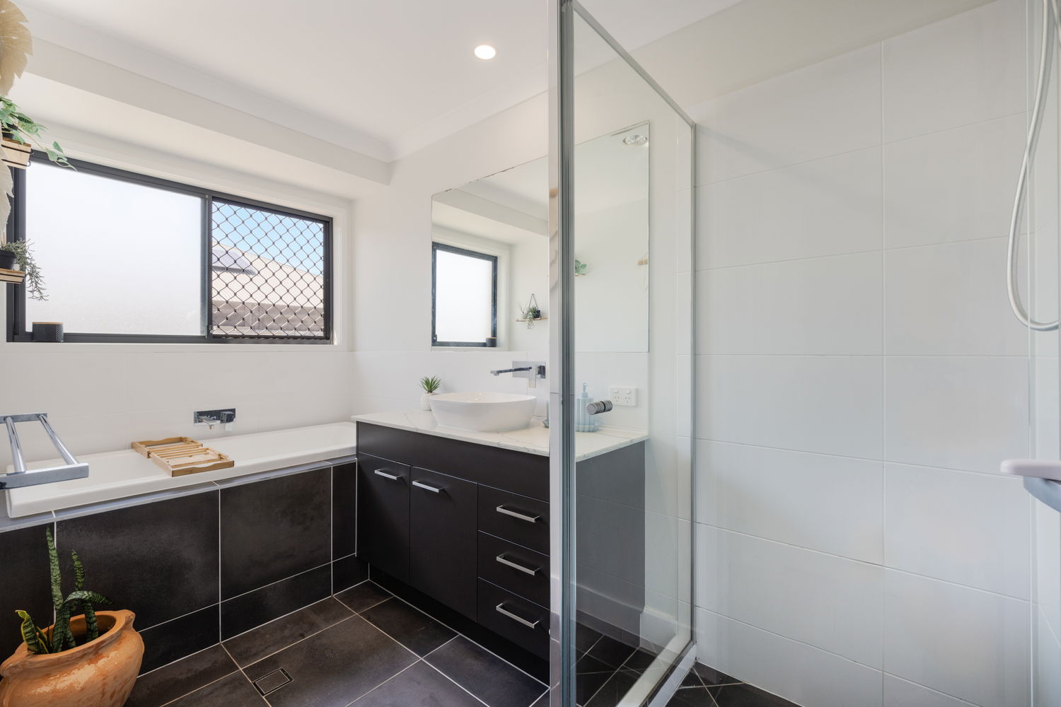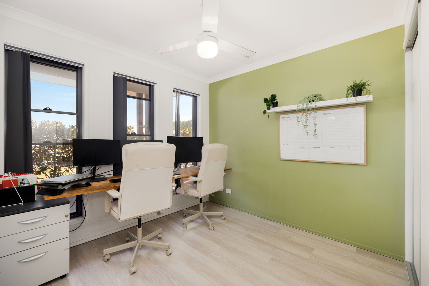 The master bedroom features a walk-in robe, large ensuite with Caesarstone benchtop and an open walk-in shower, air-conditioning, ceiling fan and carpet. The three other bedrooms have built-in wardrobes, ceiling fans, window screens, two with carpet whilst bedroom four has vinyl floor planks and is currently being used as an office with views overlooking the front yard. The family bathroom is modern with clean lines, a large bath and separate shower cubicle.