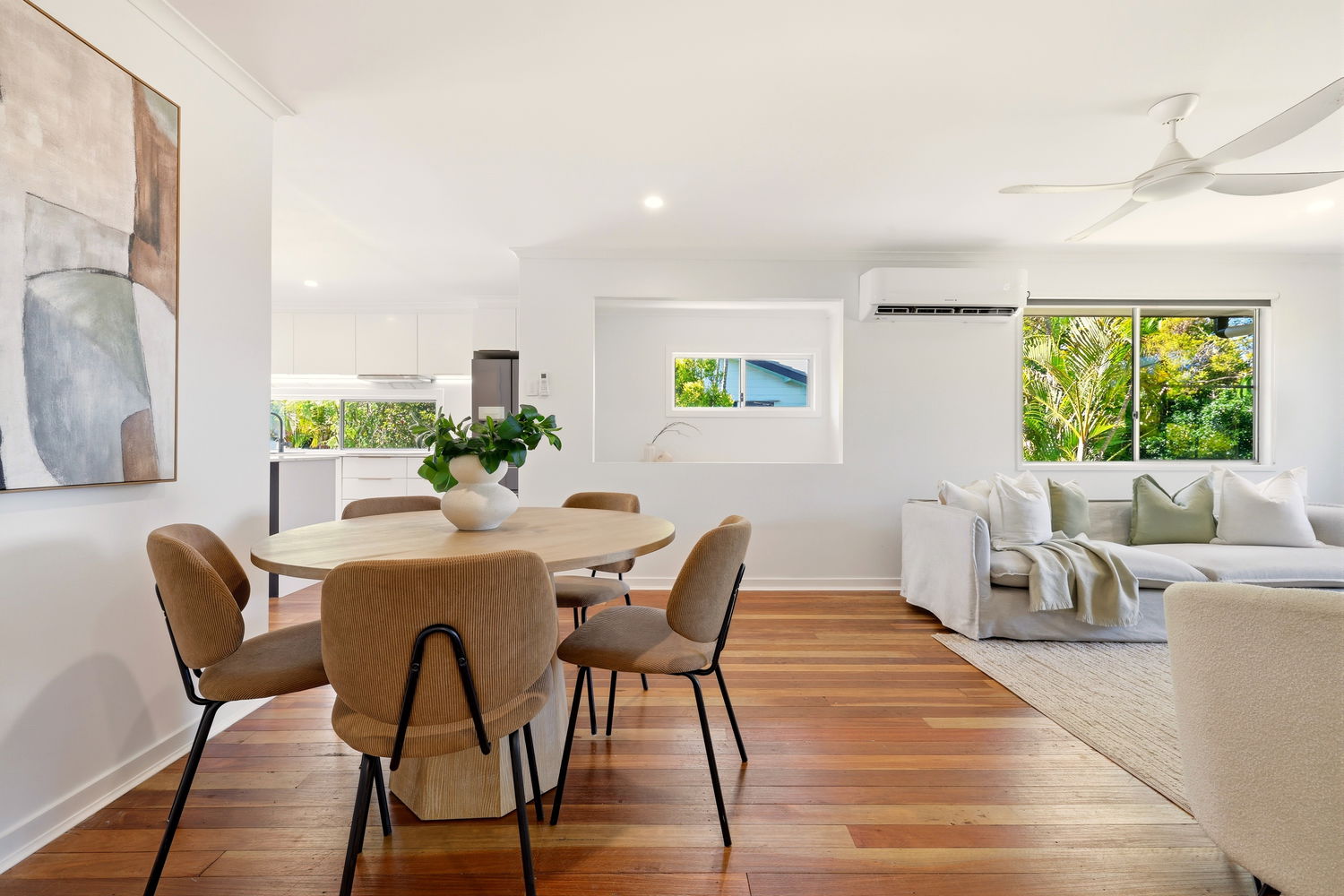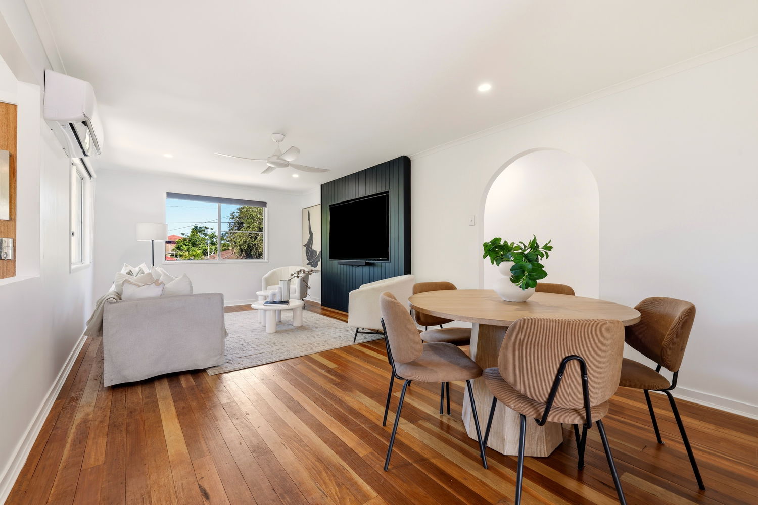 Upstairs features light-filled interiors, timber floors and a spacious living and dining area that flows seamlessly through to the updated kitchen. Three well-sized bedrooms are located on this level, each with built-in wardrobes, while the main bedroom and living area both enjoy split system air-conditioning for year-round comfort.