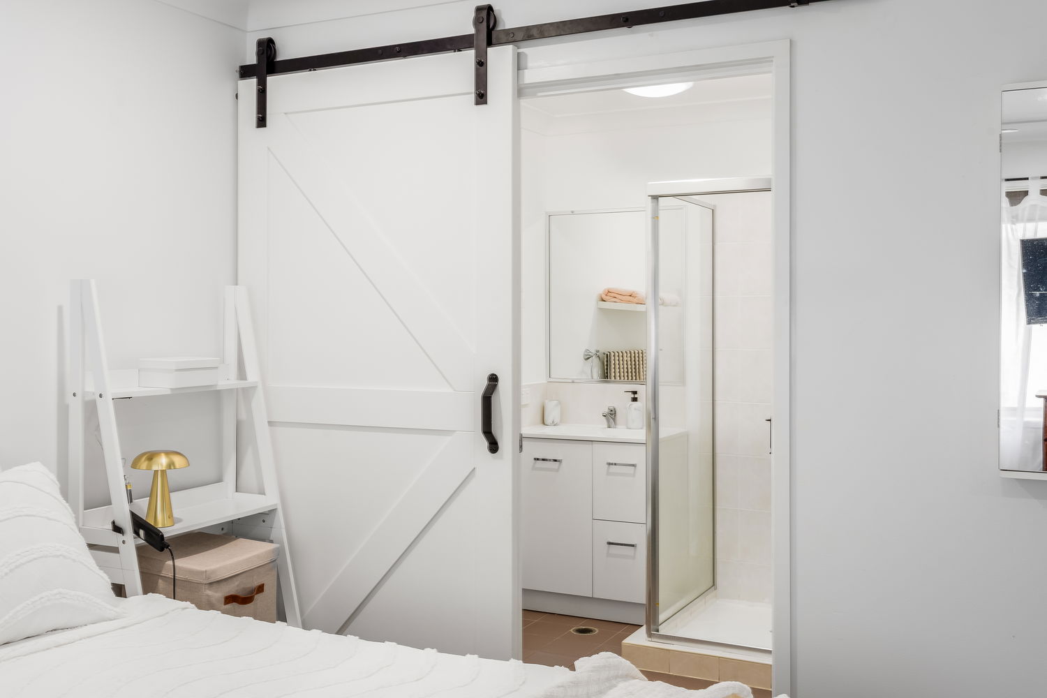 – Master bedroom with private ensuite and barn door feature