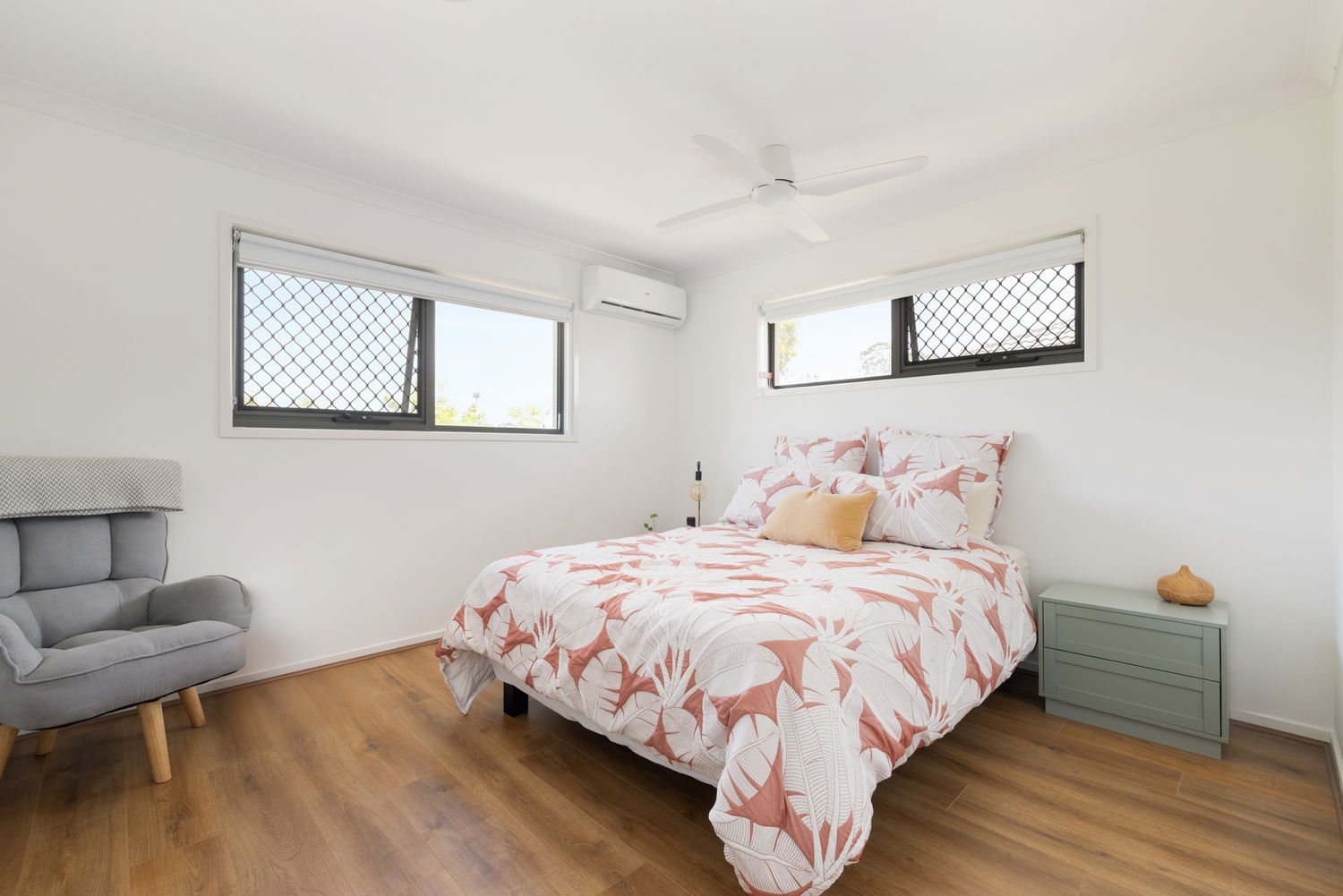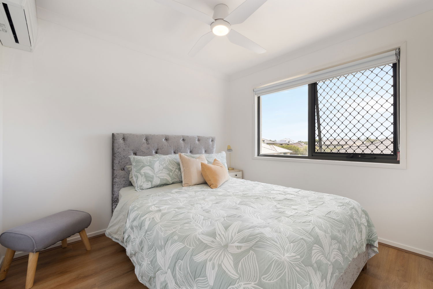 The light-filled open-plan living and dining area features tiled flooring, air-conditioning, and a seamless connection to the outdoors. The modern kitchen is well-appointed with quality appliances, generous bench space, and ample storage, flowing effortlessly to the enclosed patio, a versatile all-weather retreat ideal for entertaining or relaxing year-round.