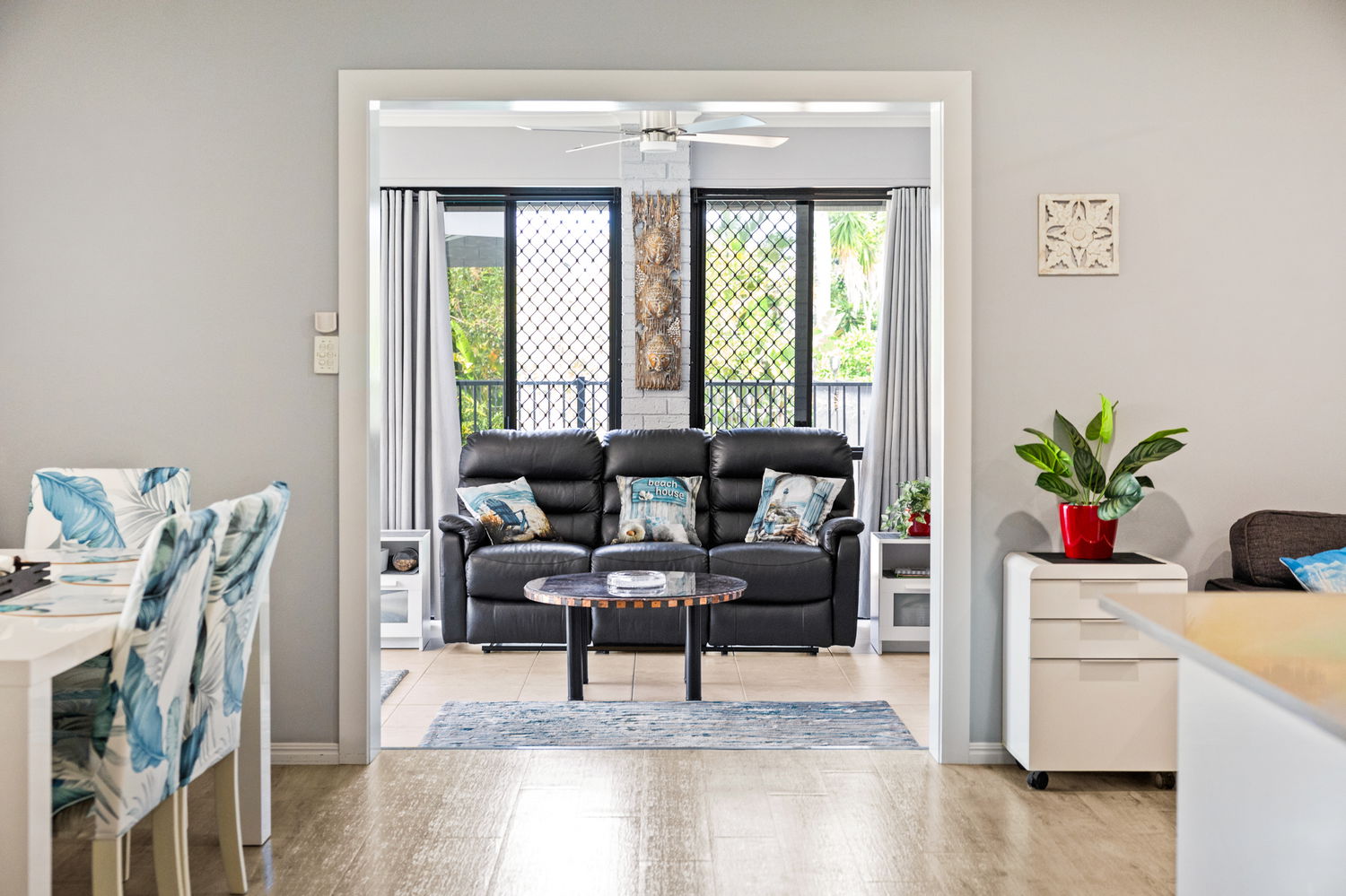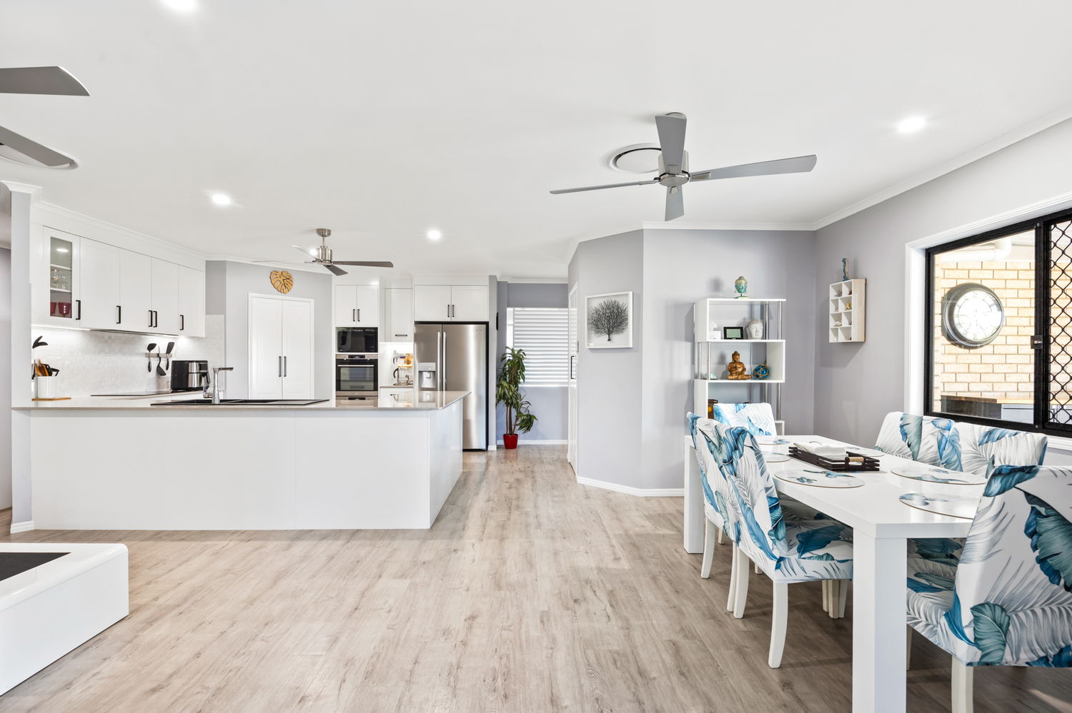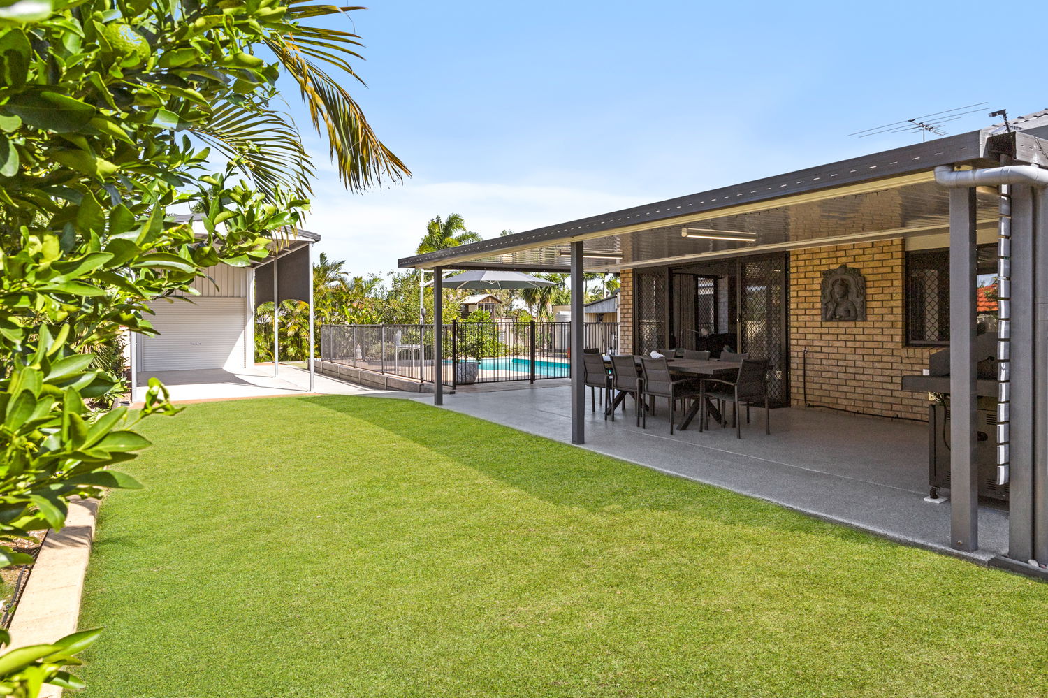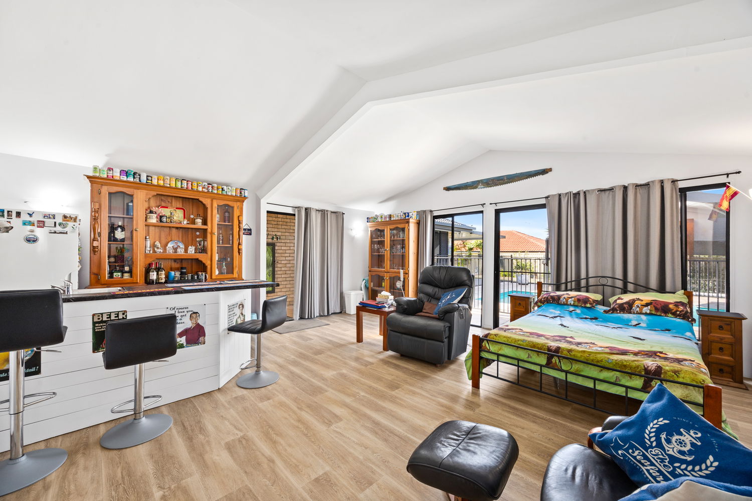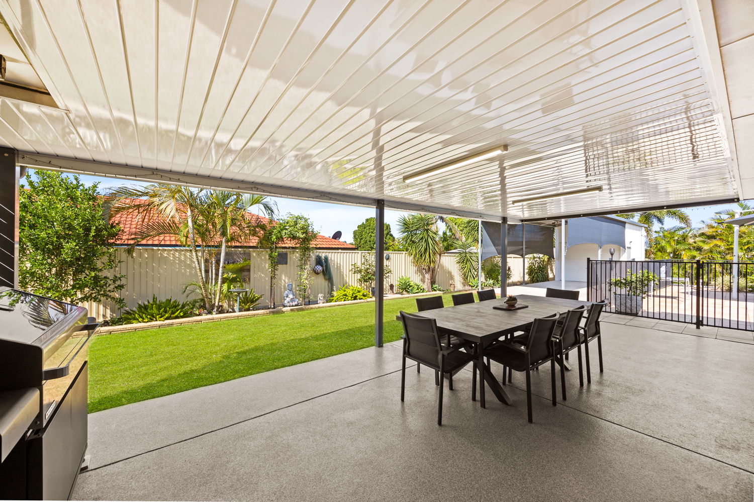 Open-plan design with seamless indoor-outdoor integration and covered BBQ area