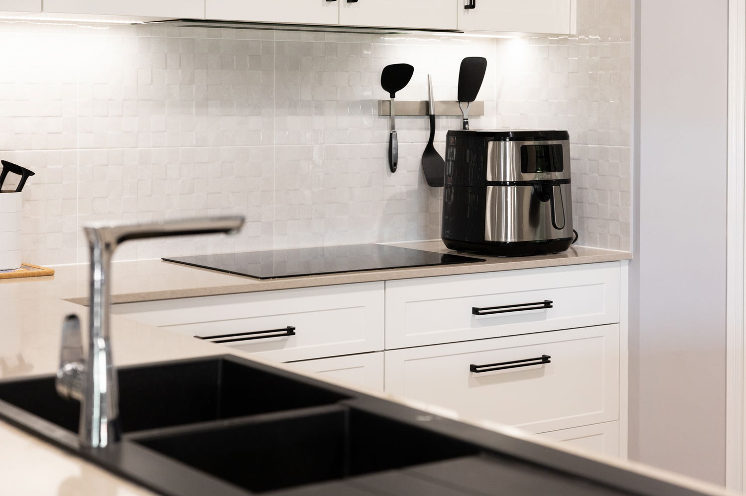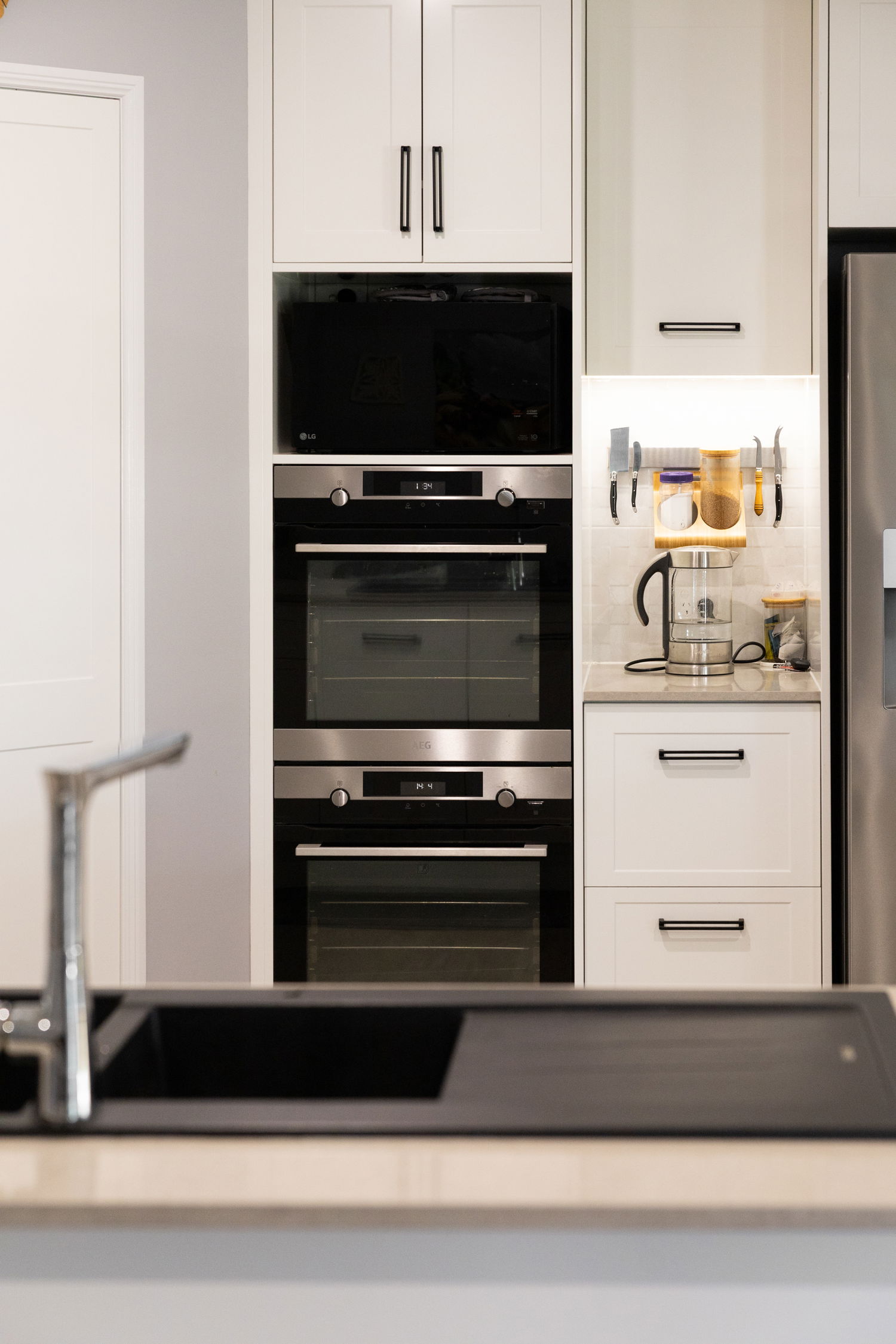 Modern Kitchen with 2 self cleaning ovens, feature lighting and impressive storage options including 2 pantries