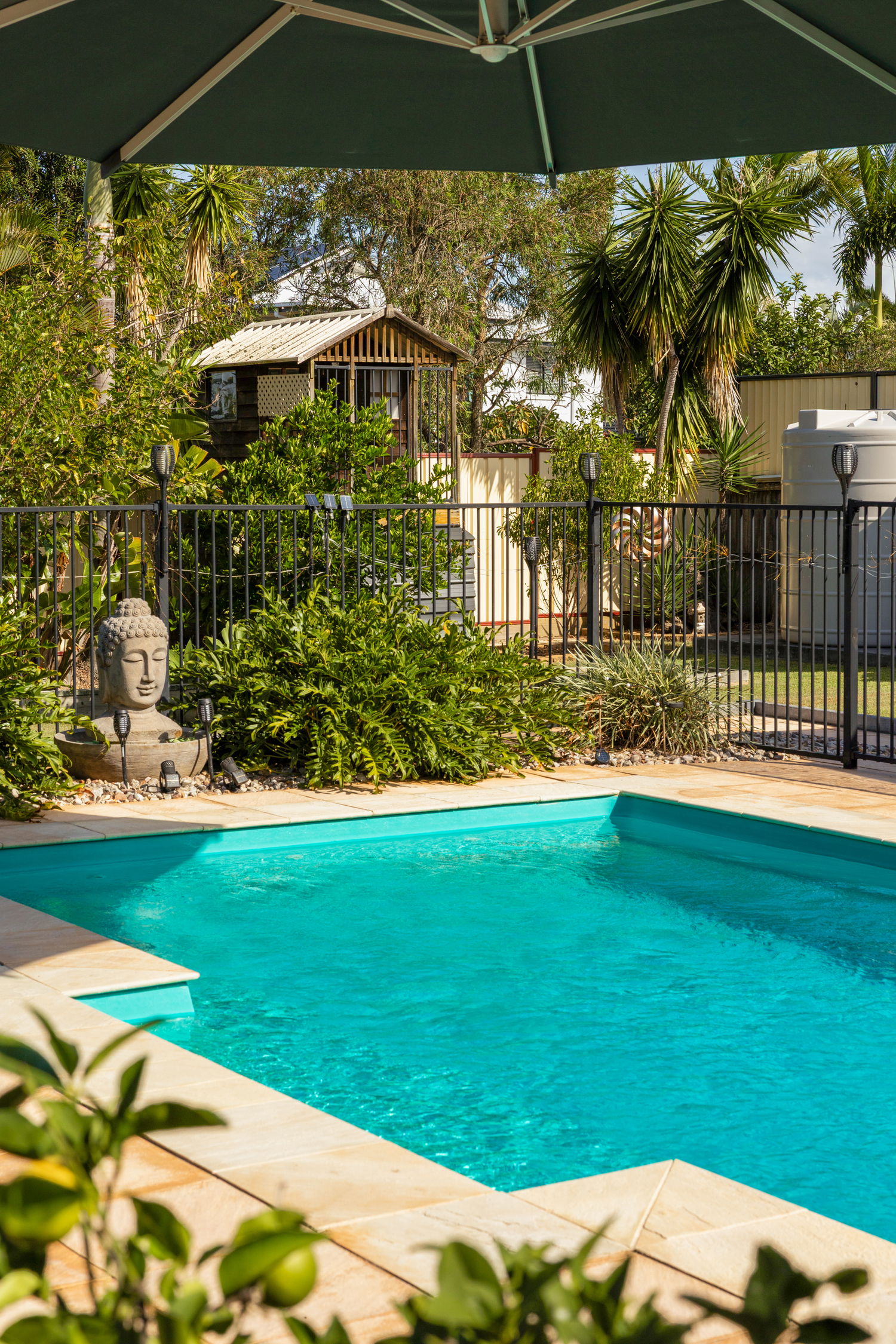 Large glass openings invite natural light and effortlessly transition to the outdoor entertaining area, where a sparkling in-ground pool with spa jets becomes the centerpiece of relaxed Queensland living.
