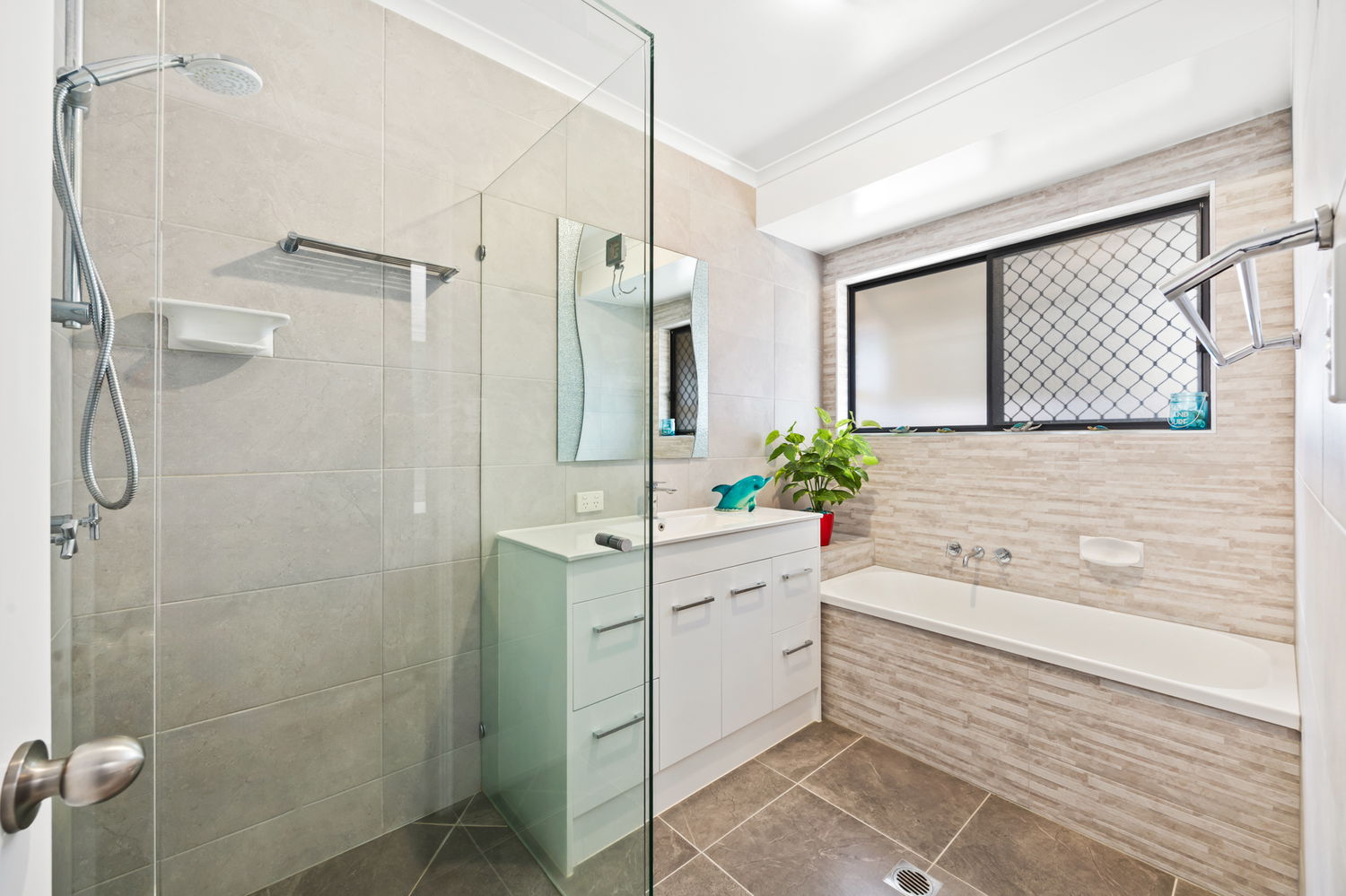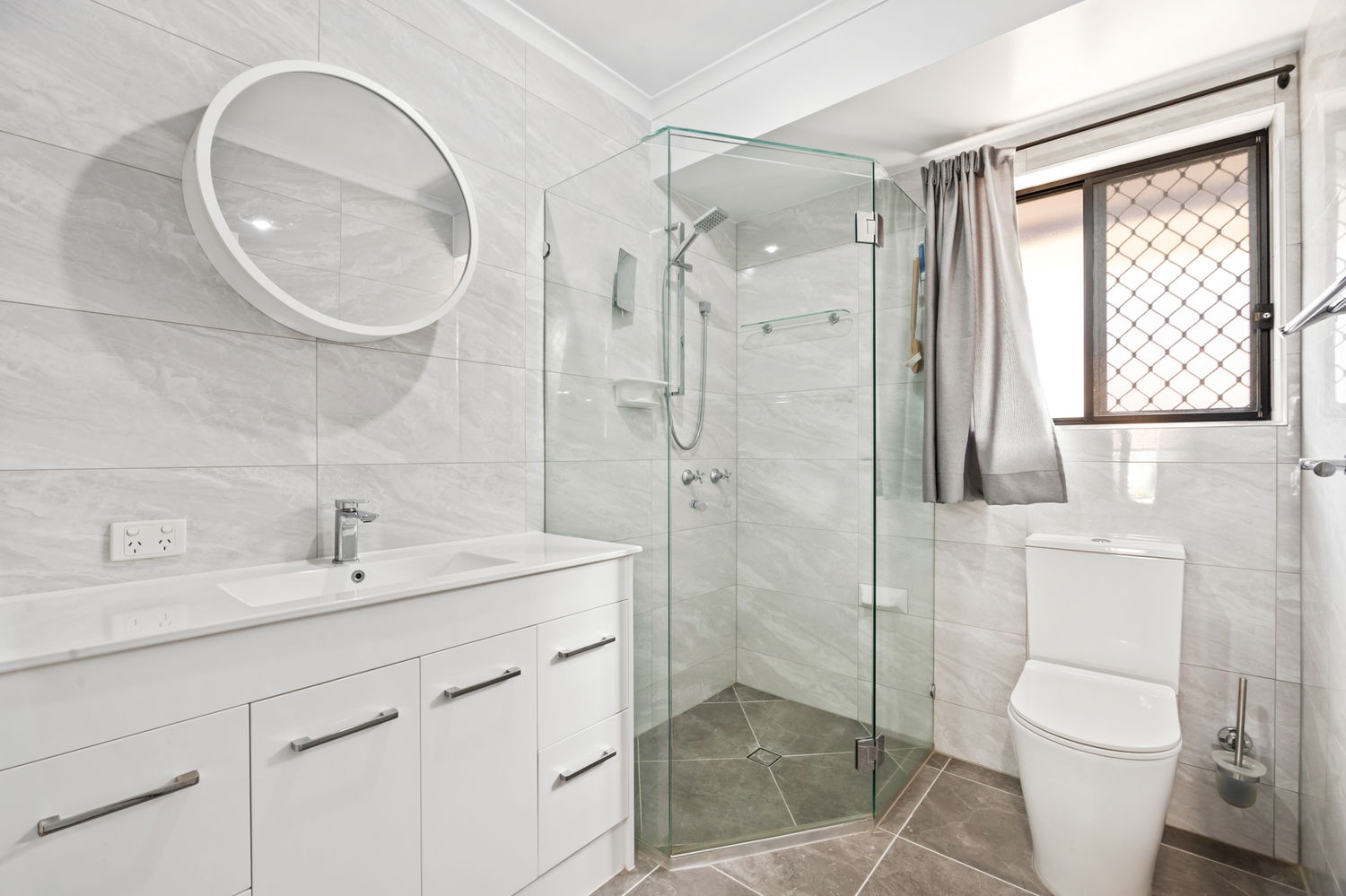 2 Modern bathrooms with a separate toilet and powder room