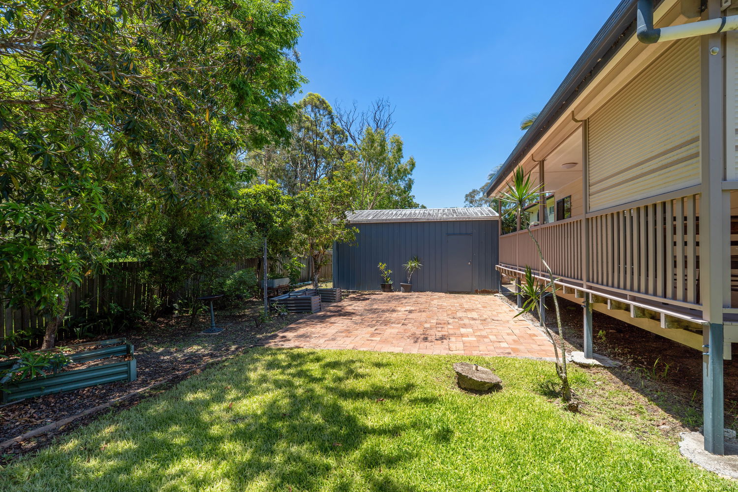 The shed-style garage at the back is huge and comes insulated and fully powered.