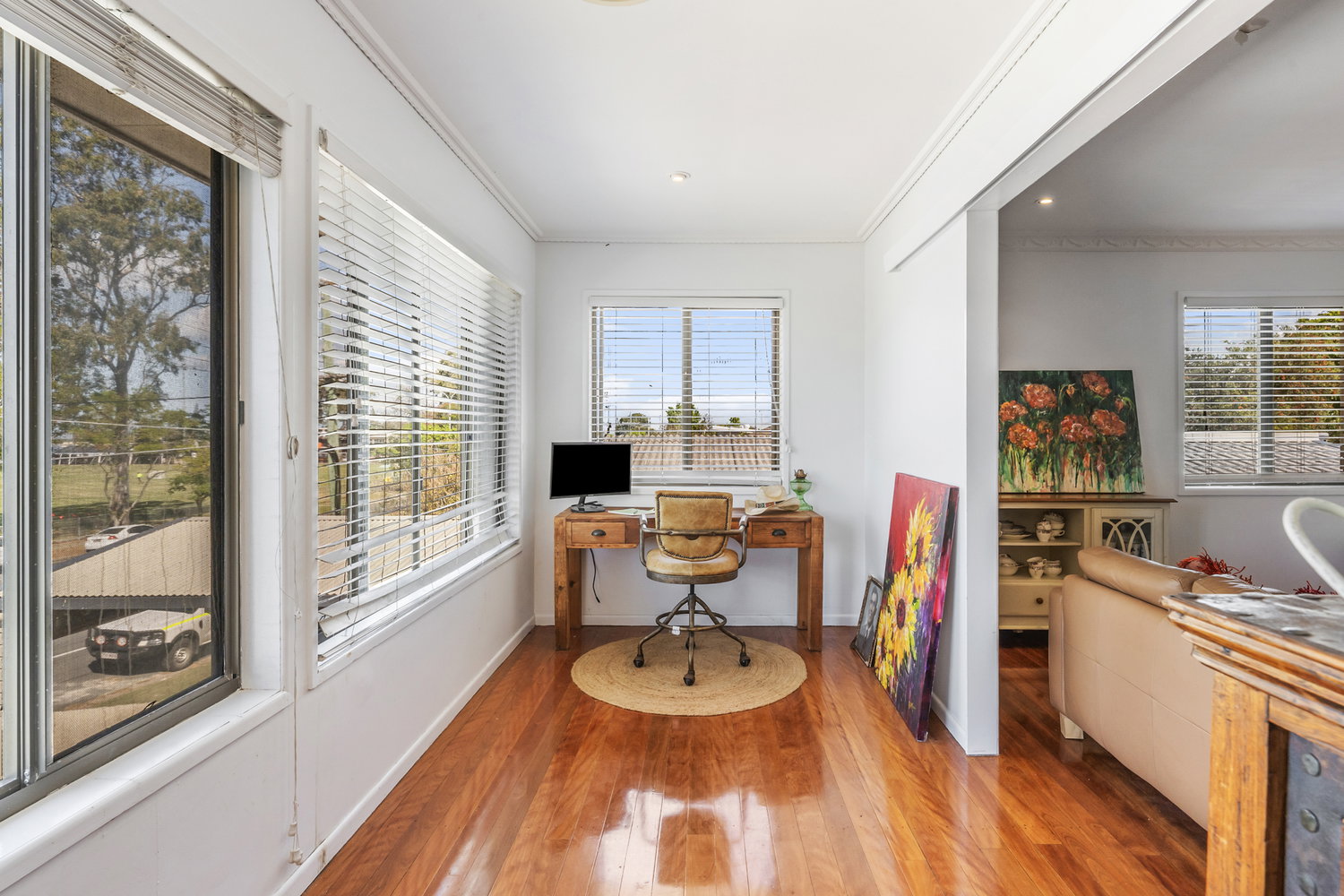 Upstairs boasts great flow and is ready to enjoy as it stands. Three well-proportioned bedrooms, all with built in robes, are serviced by a central bathroom, while polished hardwood floorboards bring warmth and a sense of rich character throughout. The main living area is generous, bright, and filled with natural light, flowing through to a sunroom that adds yet another layer of usable space.