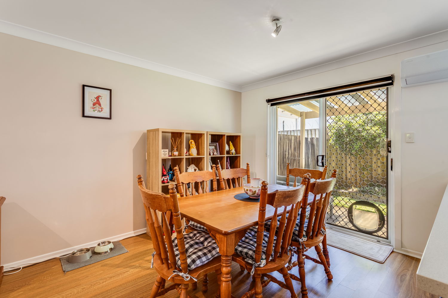 Step inside and you’ll immediately appreciate how well the ground floor is laid out. The open-plan living and dining zone is generous in size, filled with natural light, and finished with warm timber-look flooring that gives the space a cosy, welcoming feel. With a split-system air-conditioner and ceiling fan, comfort is covered year-round, and the flow from indoors to outdoors makes the whole level feel even more spacious.