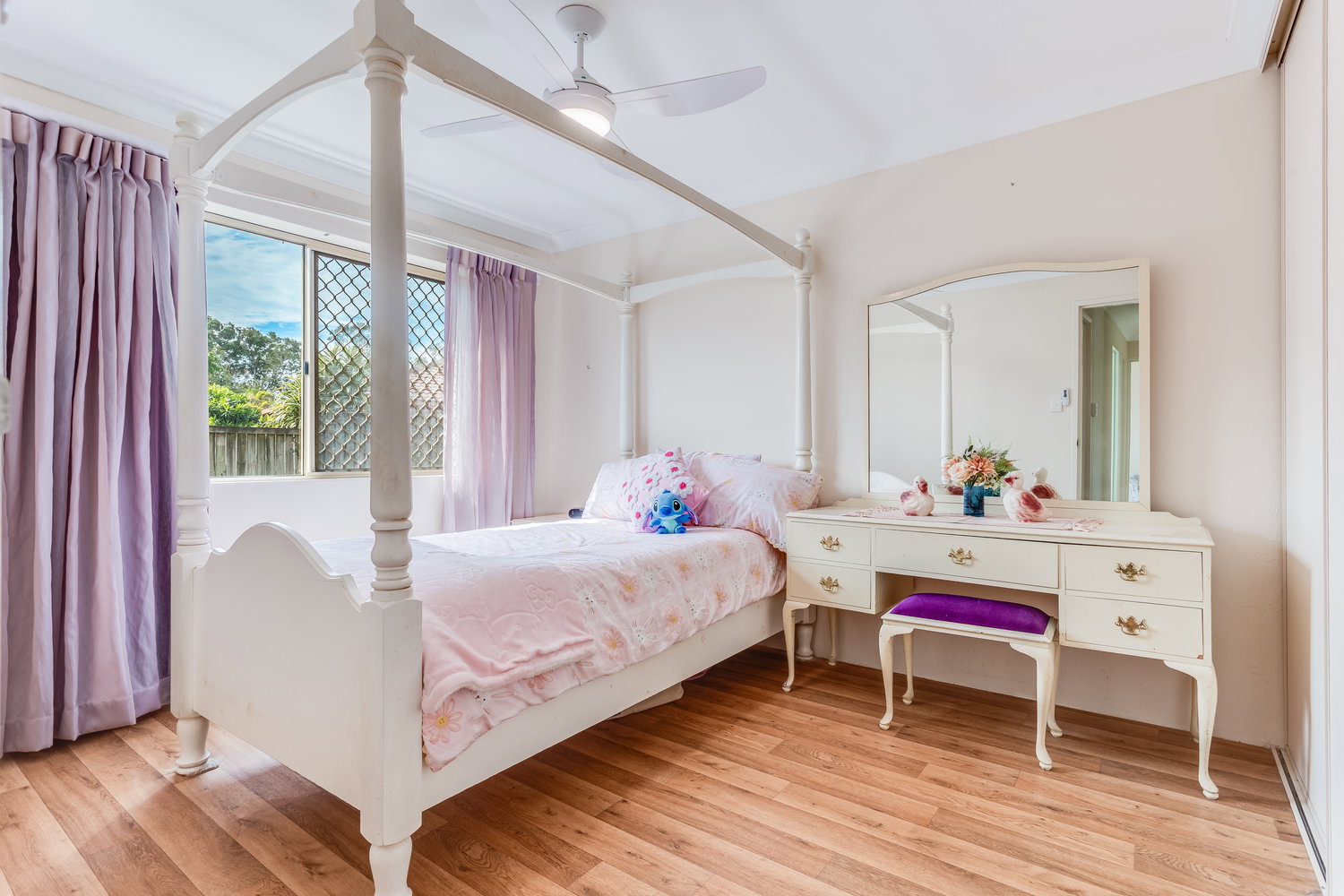 Both bedrooms are generously sized, with built-in storage and ceiling fans, while the centrally located bathroom and separate laundry enhance everyday convenience.