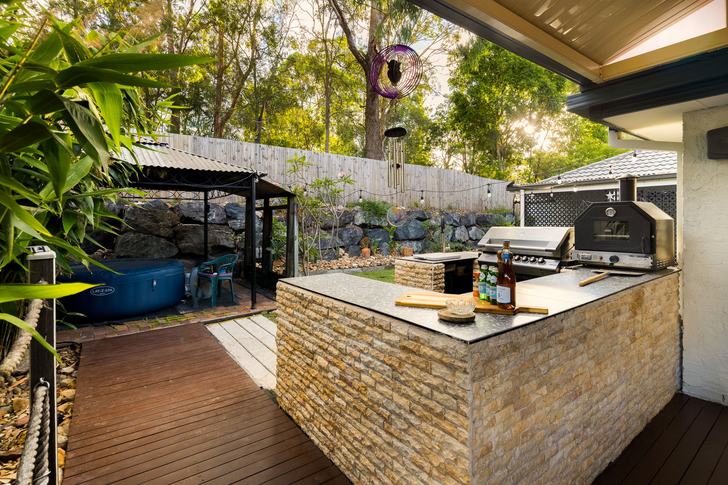 Outdoor living is a standout. A welcoming front timber deck captures the morning sun perfect for coffee or quiet moments while the expansive rear covered deck is designed for entertaining. Complete with an outdoor kitchen, this space overlooks a private, landscaped backyard with room for children to play or the option to add a swimming pool.