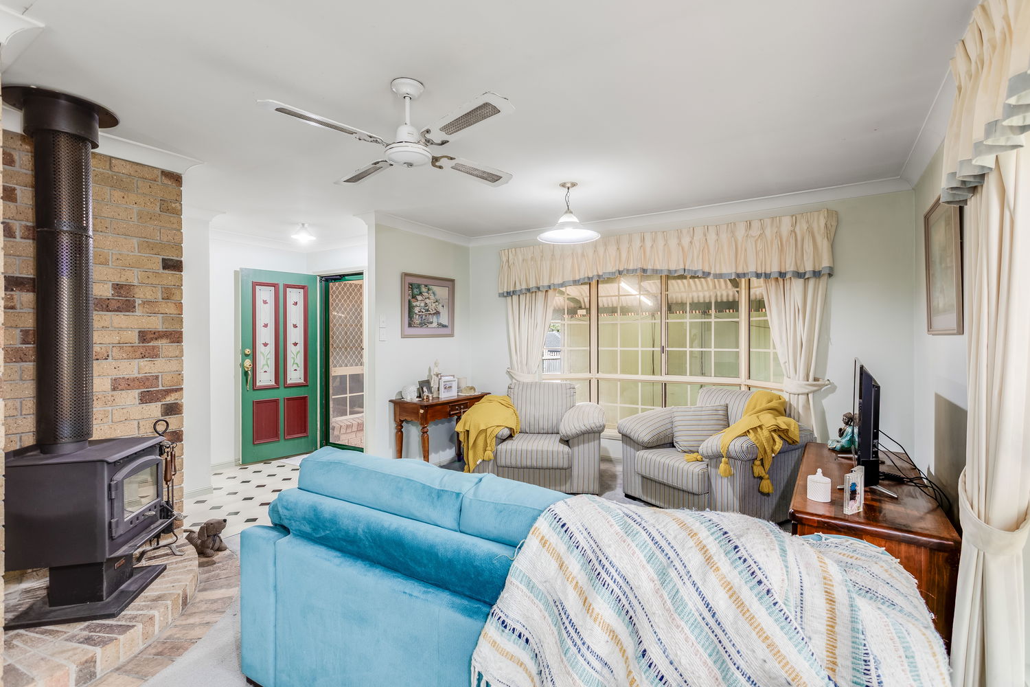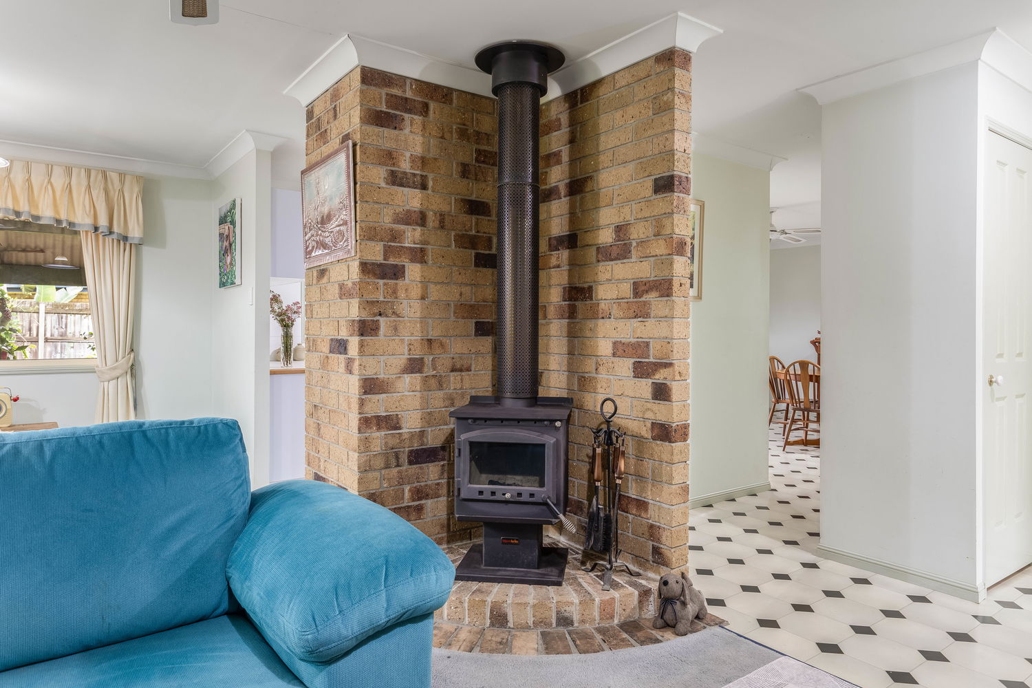 Inside, the floor-plan is thoughtfully arranged to create both togetherness and separation, with two distinct living zones giving you flexibility for daily life. A generous family and dining space sits at the heart of the home and connects seamlessly to the kitchen, offering the perfect hub for shared meals, homework at the table and casual gatherings. Nearby, the separate living room provides a cosy retreat, and the beautiful wood-burning fireplace — set against exposed brick — becomes an instant focal point, bringing texture, warmth and an atmosphere that’s hard to replicate. It’s easy to picture winter evenings here with the fire crackling softly in the background, adding a comforting, relaxed ambience that makes a house feel like a true home. The kitchen is centrally placed with great bench space and an easy outlook into the main living areas, ideal for keeping conversation flowing while you cook or entertain.